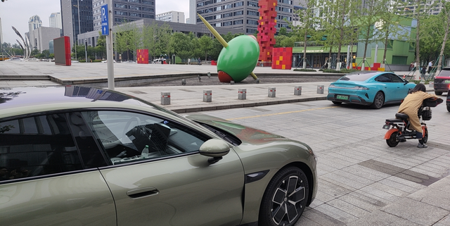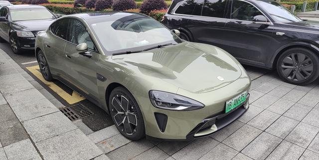 米车逐渐多了起来 走路看到一辆标准版su7激动拍照 然后发现一辆海湾蓝路过