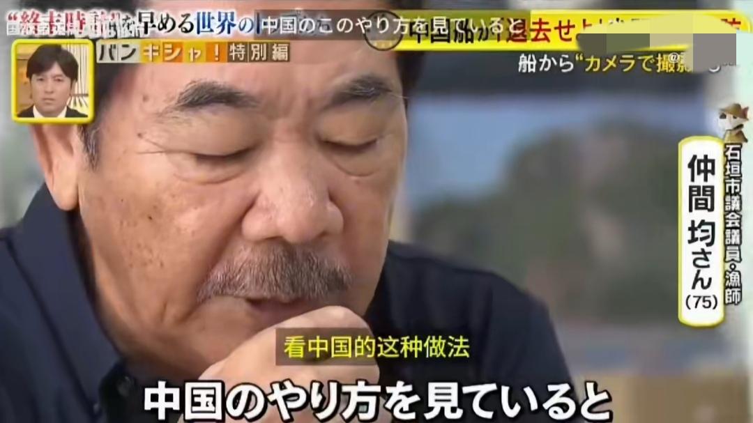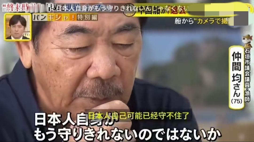 前两天钓鱼岛对峙日方视角。 伪渔民、石垣市议会议员仲间均穿着写有日方称呼钓鱼岛名称的衣服称:“毕竟这里的气氛很紧张。看中国的这种做法,日本人自己可能守不住了。海上保安厅正拼命地保护我们。” 假巴意思打了一条鱼,穿着有非法名称的衣服(图3打码处),有媒体、摄影团队,有日本巡视船在旁,进入中国领海,你这算哪门子渔民,明显是来挑事的。结果被中国海警船强硬驱逐后,剩下的只有哽咽。 连琉球都不是小鬼子的领土,你们也即将从琉球群岛滚走,你们有哪门子的勇气来抢什么钓鱼岛。日本领土仅限于四个岛,及其他盟国规定的附近小岛。
