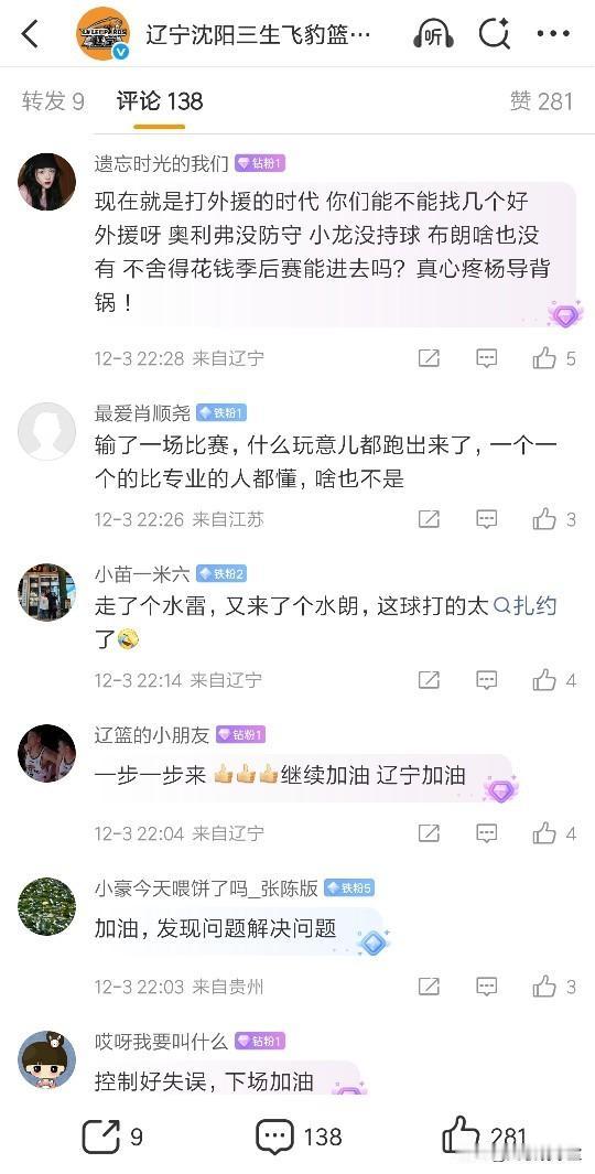 信不信?辽宁不赶紧换外援的话,季后赛进不去,这绝非危言耸听!现在辽宁这四外援配置,水平太低了,进攻端基本没有杀伤力,连常年CBA副班长的江苏都干不过了,布朗太水,威尔斯太老,奥利弗和莫兰德纯蓝领型大外,只能靠防守和吃饼了,外援问题难免遭球迷质疑,俱乐部官方微博被炮轰,连球迷都知道外援不行,不相信球队管理层不清楚,新赛季修改规则后,就是拼外援实力,随着大韩退役,张镇麟出走,辽篮本身国内球员的实力就已经下降了,如果再不补强外援,季后赛都进不去!