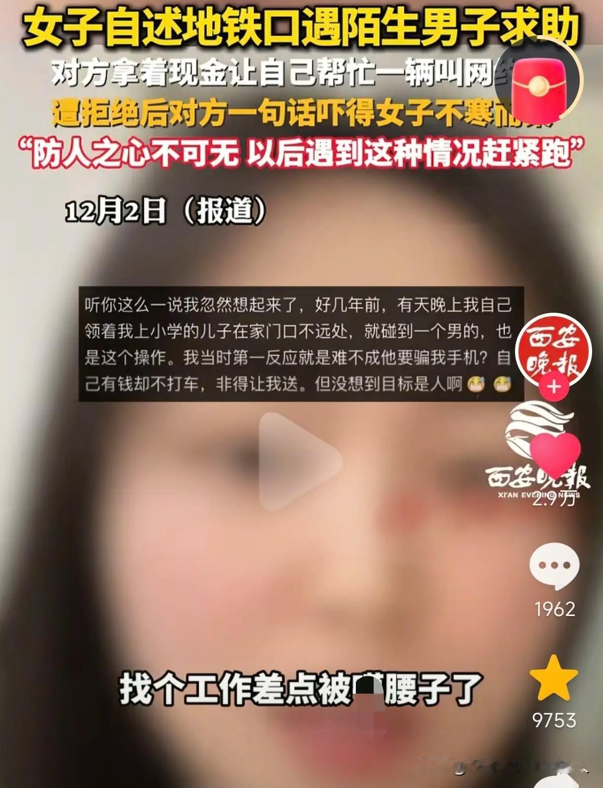 这是一种什么新型的骗局?有没有人上当? 一女子路过地铁门口,结果遇到了一个戴黑
