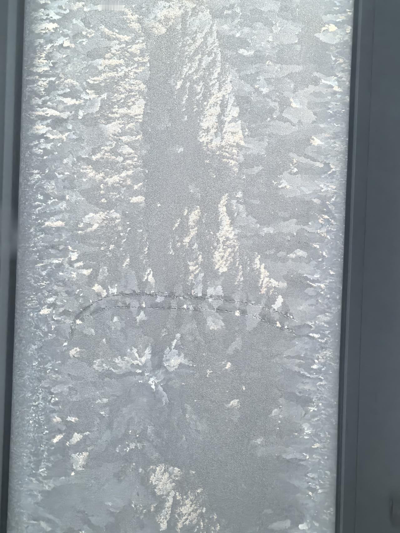 早晨起来,就看看阳台上的玻璃。感受一下大自然的鬼斧神工。 窗花是大自然的杰作。 记得小时候,百无聊赖,没事干的时候就看窗花,天马行空、光怪陆离,如果有缺憾那就是没有颜色。 天女撒花,神仙下凡,嫦娥奔月。 葫芦娃,钟馗捉鬼。小时候我看着窗花,奶奶就指着那些画面一一和我道来。 到了早晨8点半左右 窗花就会融化消失了。 这些美好,一下就不见了。就如“彩云易散琉璃易碎”一样。 大家对于火烧云不陌生,霜花南方的友友们大概没有见过。 这也许就是属于东北独特的美吧。 喜欢窗花么? 美好 冬日 黑龙江