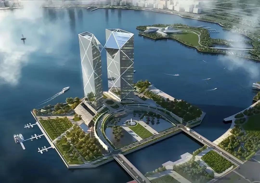 有钱的城市,都是没有湖,自己挖个湖,比如郑州大玉米楼前的湖,杭州的金沙湖,成都也是挖了个湖,有的是把很窄的河流拓宽成江,大江大湖边上的房子都要好卖点吧! 这个是位于上海浦东新区的一个人工湖,是2002年就开始挖的了,叫滴水湖,很漂亮啊!边上的双子塔是不是很像一个数字双11呢,义乌还在挖一个义乌的双江湖,诸暨还准备挖一个高湖,挖一个湖,周围建些房子就叫某某湖新城或新区,其实他们都是以治水的名义申请的吧!到时候也是又漂亮双赢了啦!以上仅供参考,属个人意见!