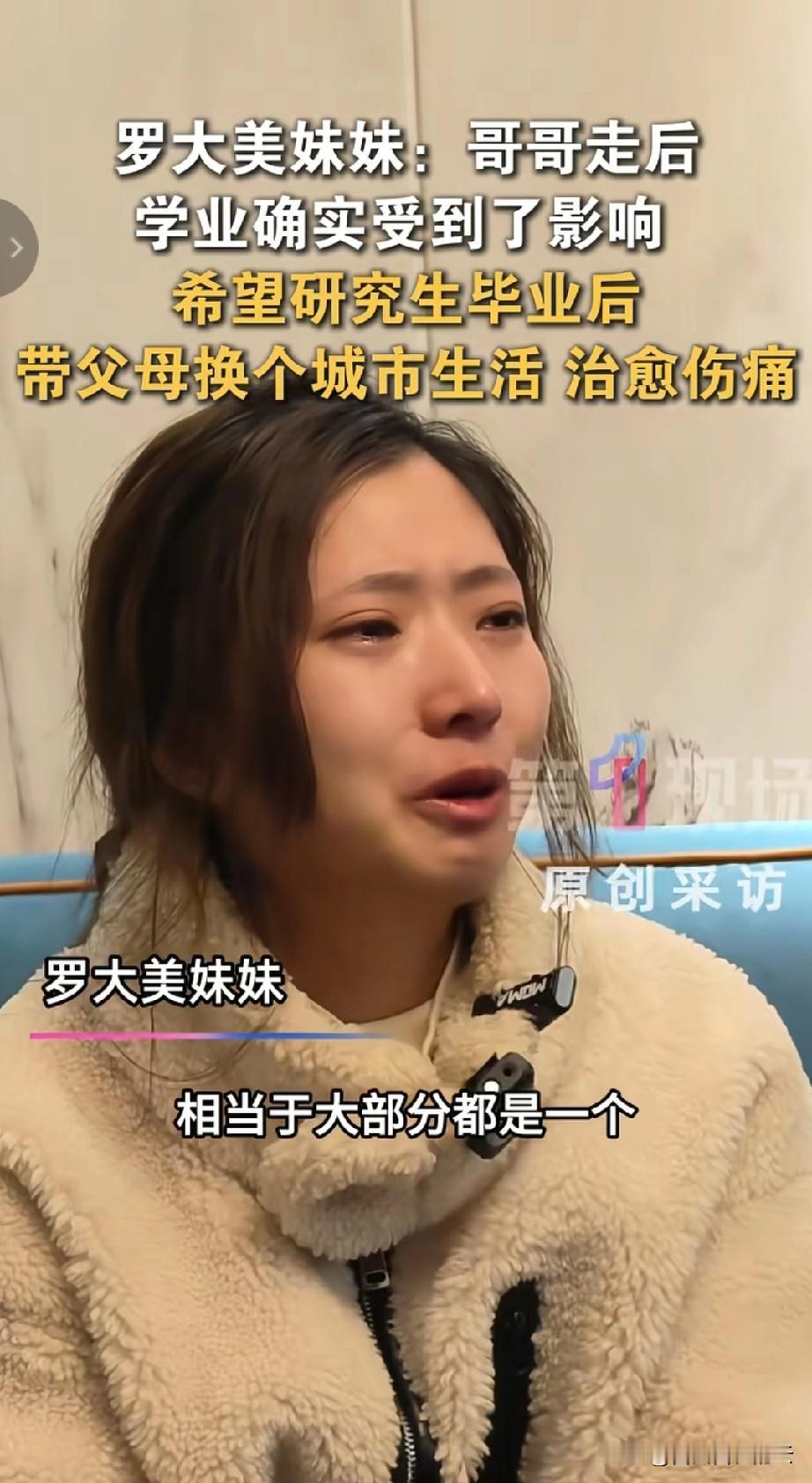 罗大美妹妹因为一直忙哥哥的案子,研究生三年,她只有第一年在学校,研二研三的时候,她很少在学校。 她说马上就要毕业了,她希望能好好完成毕业论文,顺利毕业。 毕业后她想去外地找个工作,然后把父母接过去和她一起生活,慢慢接纳、治愈自己。 哥哥的离世,给了一家人巨大的打击。妈妈的头发全白了,动不动就哭。爸爸变得更沉默了,常常坐在角落里发呆。 以前在哥哥的庇护下长大的小女孩,也一下子成长了很多。她说这次如果申诉不成功,她还会继续申诉,一直给哥哥个满意的交代。