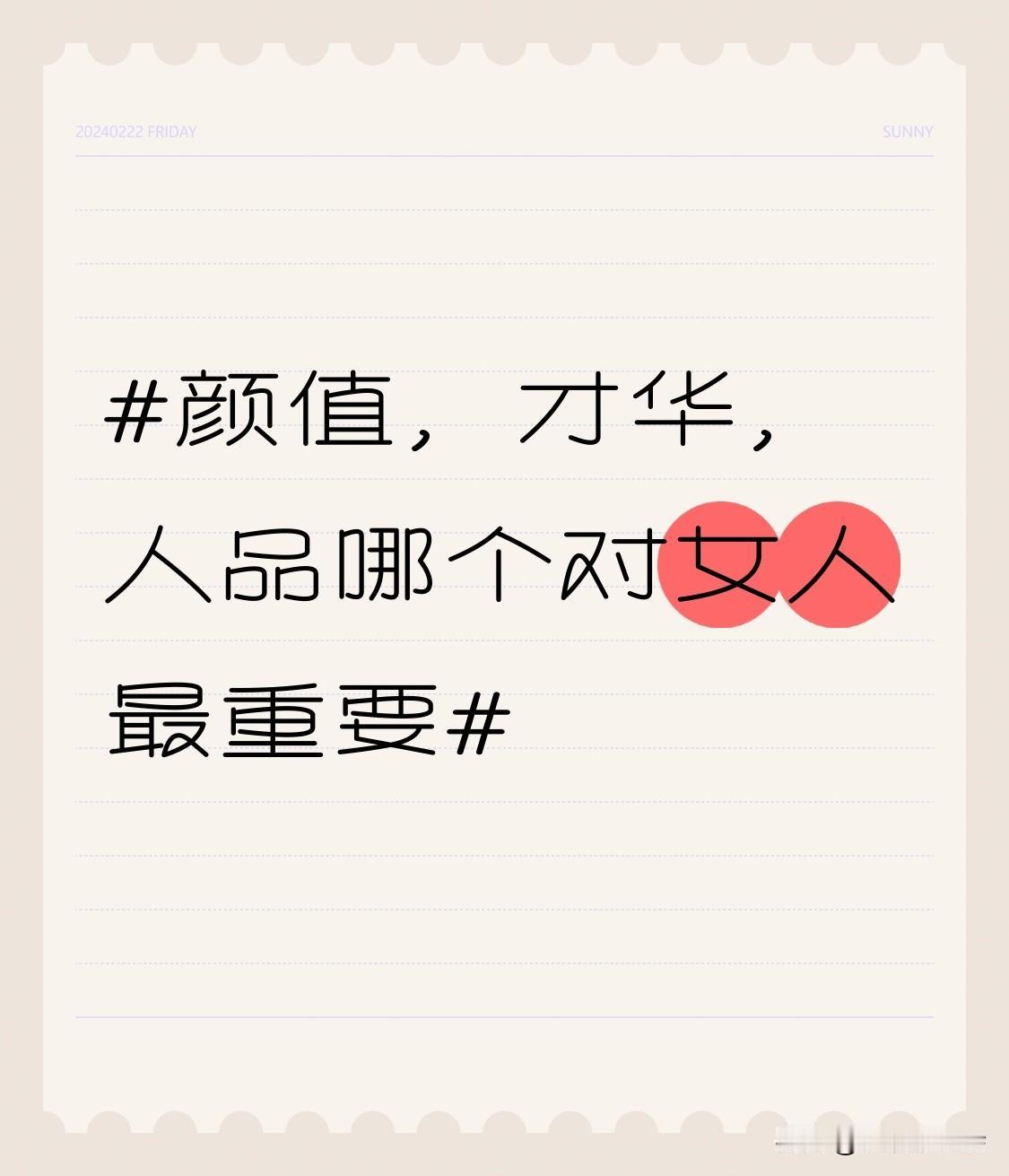颜值、才华、人品,哪个对女人最重要?这就像一场没有标准答案的考试。 颜值是入场券,漂亮脸蛋能在第一时间吸引目光,让人更容易获得机会。但它就像烟花,绚烂却短暂,岁月会无情地在脸上留下痕迹。 才华是实力证明,有才华的女人能在职场和生活中大放异彩,实现经济独立与自我价值。然而,如果才华没有人品护航,可能会走上歪路。 人品才是最核心的。善良、诚信、有担当的女人,无论颜值高低、才华多少,都能在家庭中带来温暖,在社交中收获真心。 对女人来说,颜值是点缀,才华是依靠,而人品才是一生的底气。