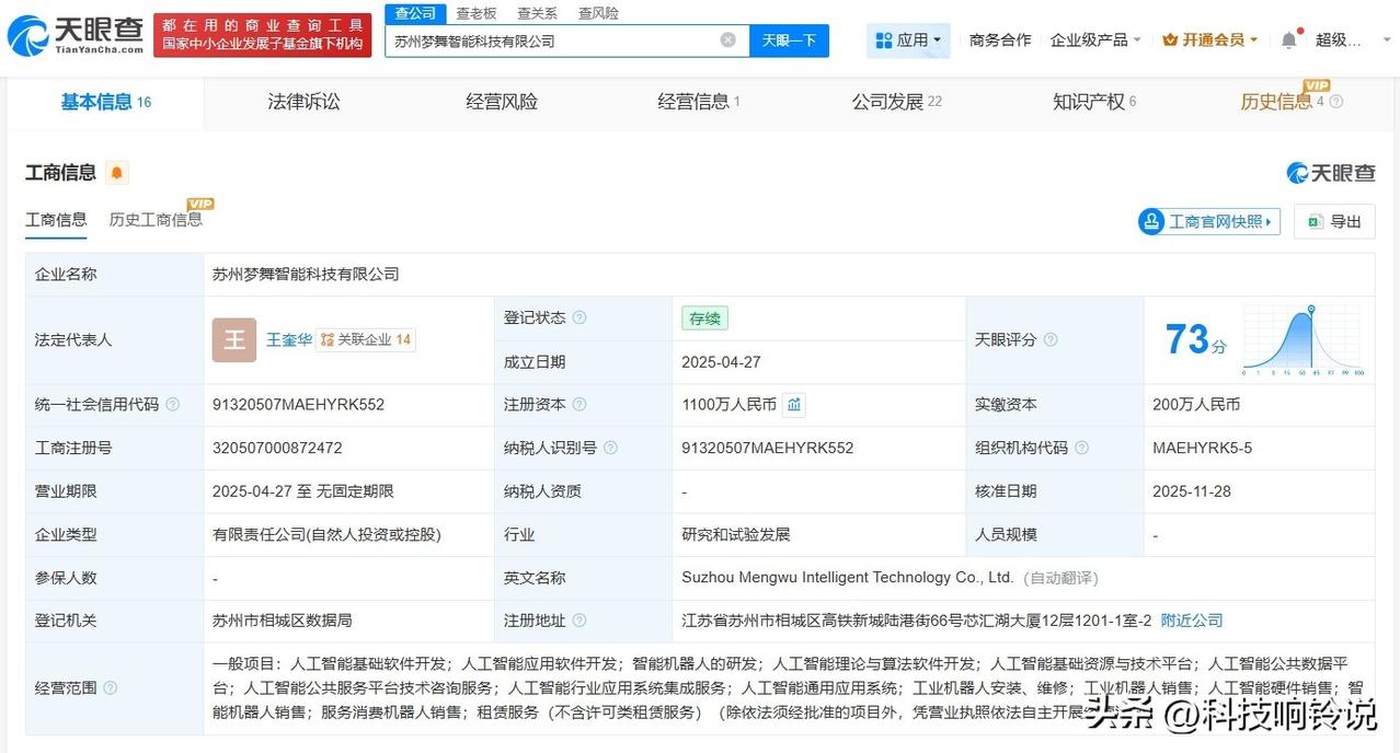 【徕木电子入股梦舞智能 后者为智能机器人研发公司】 天眼查App显示,近日,苏州梦舞智能科技有限公司发生工商变更,新增徕木股份(603633)为股东,同时注册资本由1000万人民币增至1100万人民币。 苏州梦舞智能科技有限公司成立于2025年4月,法定代表人为王奎华,经营范围包括人工智能基础软件开发、人工智能应用软件开发、智能机器人的研发、人工智能理论与算法软件开发等。股东信息显示,该公司由江苏长河投资有限公司、王奎华、牧牛生长股权投资(苏州)合伙企业(有限合伙)及上述新增股东等共同持股。 天眼查信息: