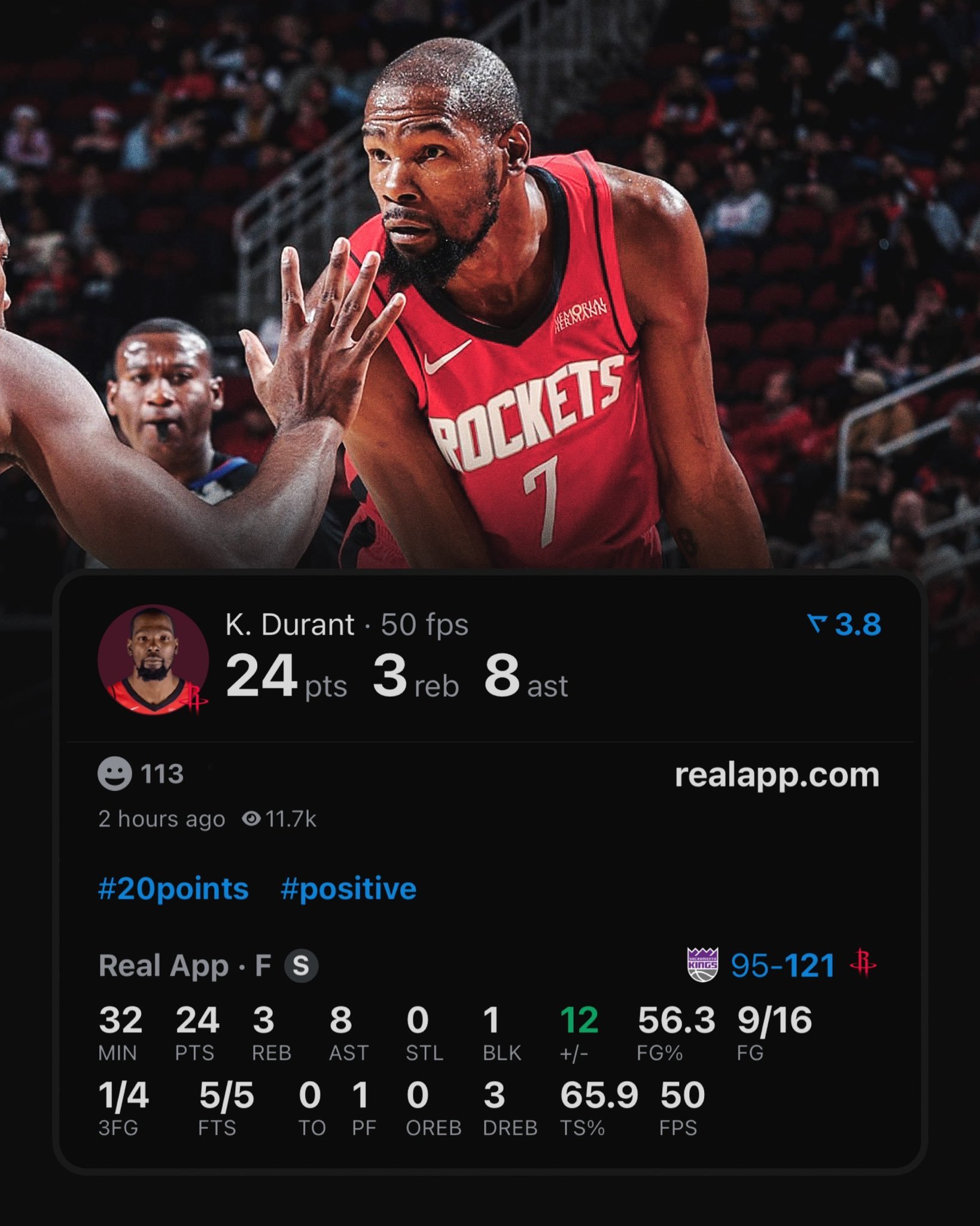 休斯顿火箭 杜兰特-我的评分:24分8次助攻( 0失误!!!) 56%投篮命中率满分满分💯休斯顿火箭国王vs火箭