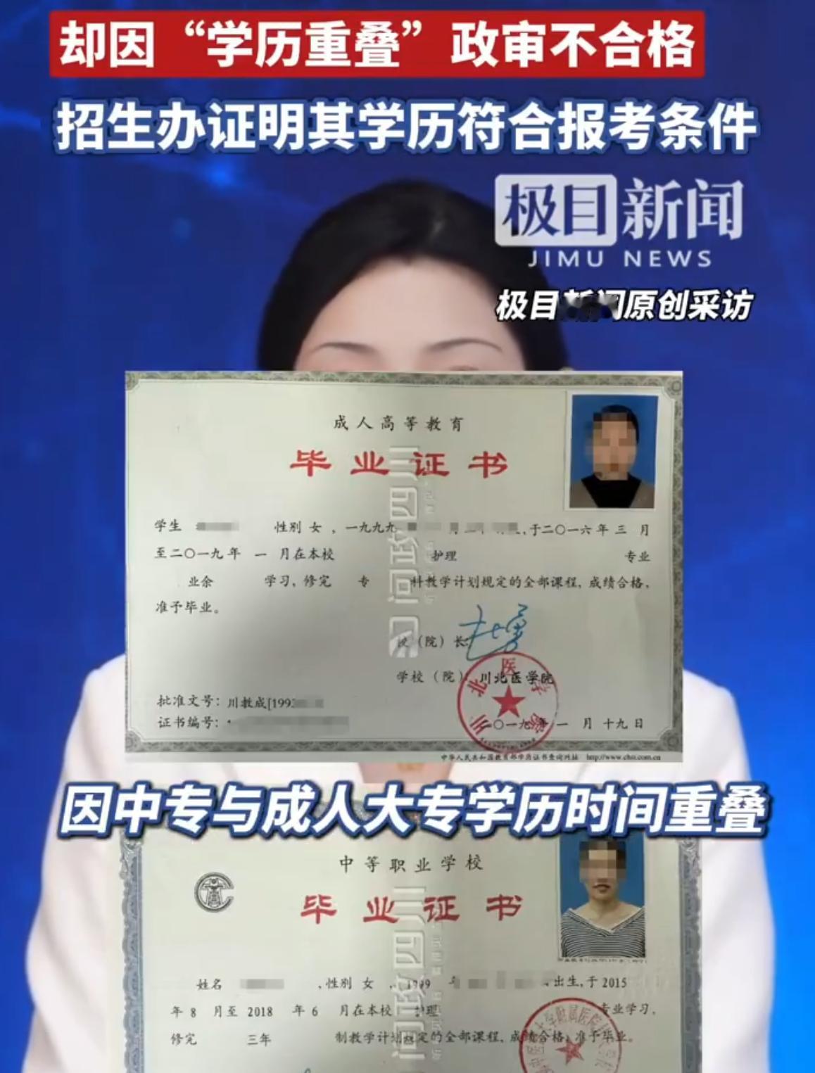 一个99年的姑娘,考事业单位笔试面试综合第一,眼瞅着就要上岸了,结果政审被卡,理由是“中专和成人大专学历时间重叠”,说她搞了“学历套读”。可问题是,她这个大专不是非法的,是正儿八经参加全国成人高考考上的,录取证明、毕业证一应俱全,教育部门还给她开了证明,说符合当年报考条件。怎么到了卫健局嘴里,就成了“违规”? 全日制和函授学历,到底能不能同时读?函授本身就是为在职人员、社会人员设计的弹性学习方式,很多人一边工作一边提升学历。如果“全日制中专+成人大专”这种组合要被一棍子打死,完全不合理啊。很多中专生为了早点就业、早点考证,选择在读期间报考成人高考,这在现实中并不少见。当年报名时没人拦你,考试让你考,毕业证也发你,十几年后政审却翻旧账,这公平吗? 更荒唐的是,不同部门说法还不一致。教育部门说你合规,人社部门说看学历真不真,卫健局却说你违反了“在校生不能报考”的规定。好嘛,一个政策,三种解读,最后让考生背锅。说到底,政策执行不能前后矛盾、口径不一。如果规定不允许,在当年报名时就该拦住;既然让人读了、毕业了、拿证了,就不能在十几年后用“追溯”的方式否定她的努力。