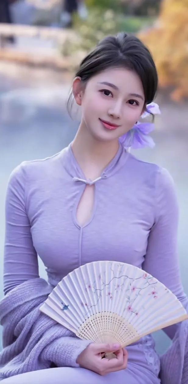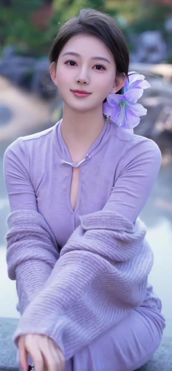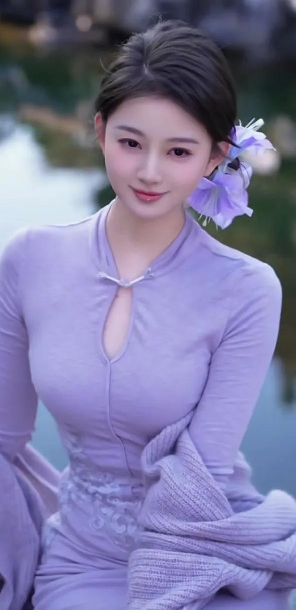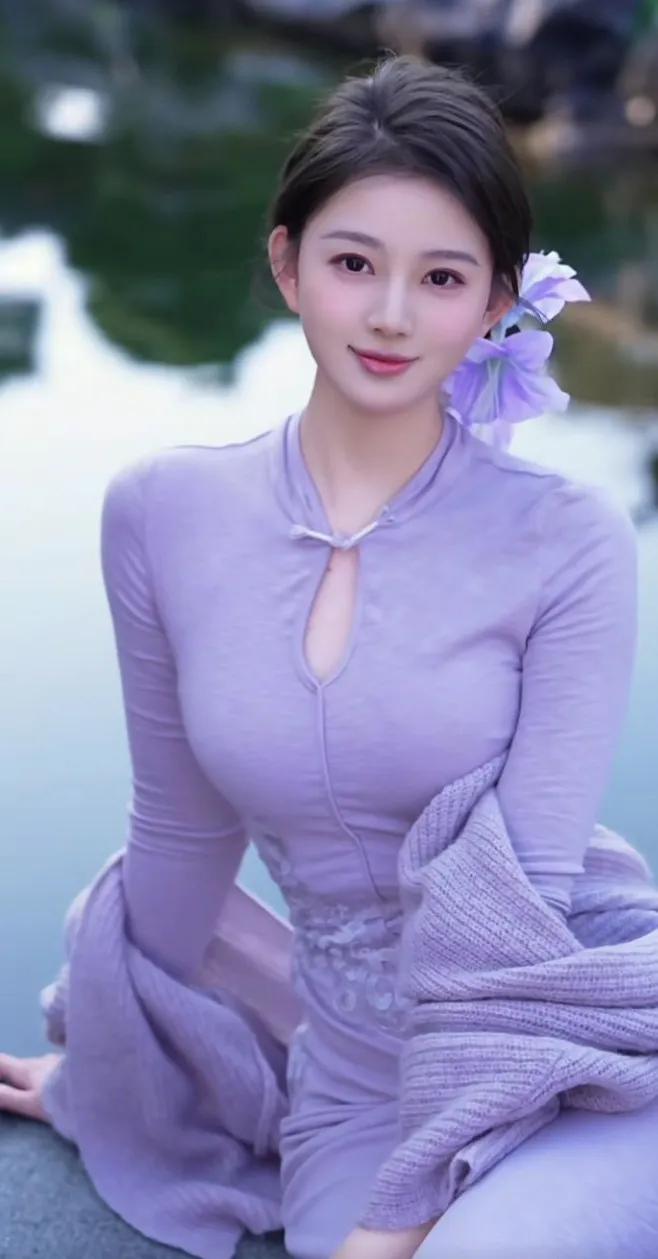 紫衣美人倚水坐,书卷轻翻意自闲。