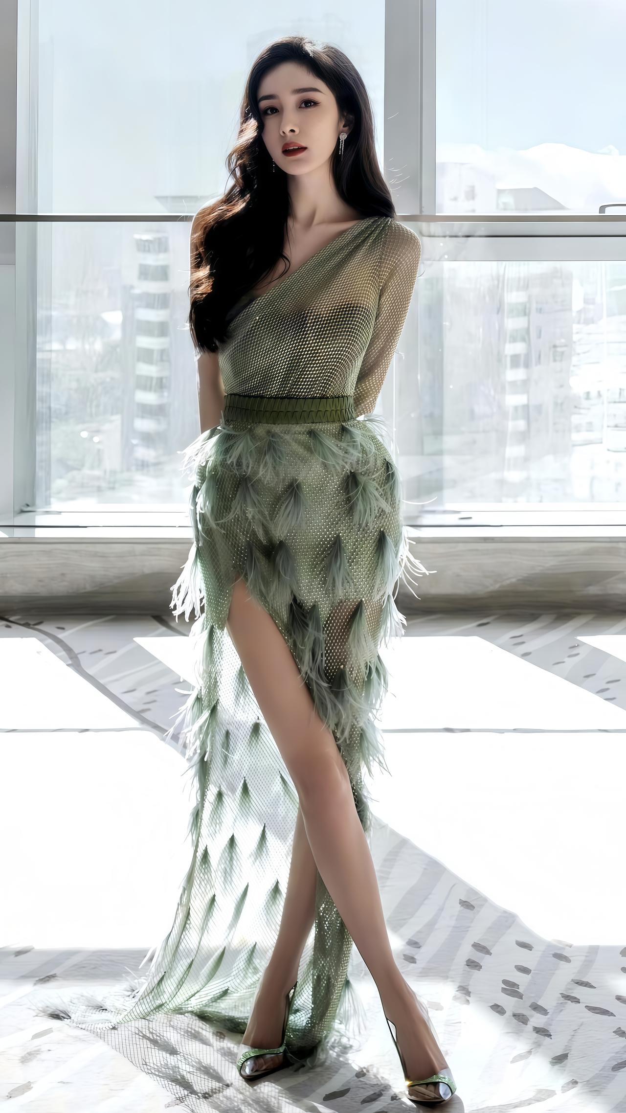 杨幂这抹“薄荷绿羽毛裙”,把清冷柔媚焊在身上了💚 谁能扛住穿薄荷绿羽毛裙的杨幂啊! 斜肩设计露出色气肩颈线,网纱肌理混着细闪,裙摆的羽毛随动作轻晃,像把春日晨雾穿在了身上——后背绑带添了点小性感,抬眼是清冷钓系,垂眸又裹着娇憨,这反差感简直是“美而自知”的顶配版。 红唇衬得皮肤冷白透亮,镜头怼脸的骨相精致到挑不出瑕疵,尤其是侧身露腿那帧,又甜又野的气场直接溢出屏! 从少女感到御姐气质,杨幂总能把“柔”和“锐”揉得恰到好处,这组薄荷绿造型是把“颜值天花板”的标签又焊牢了吧?杨幂 明星穿搭杨幂野性风造型 气质女神
