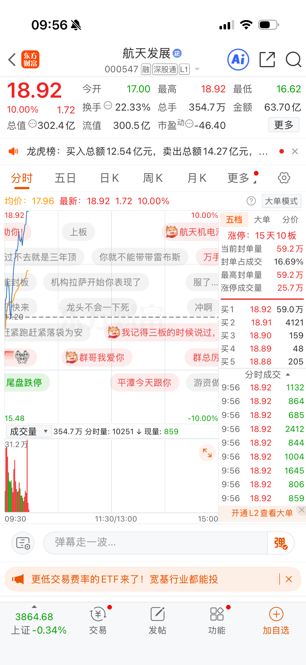 刚刚说完 航天发展就涨停 但是狂魔叔从来不贪 赚认知的🌾
