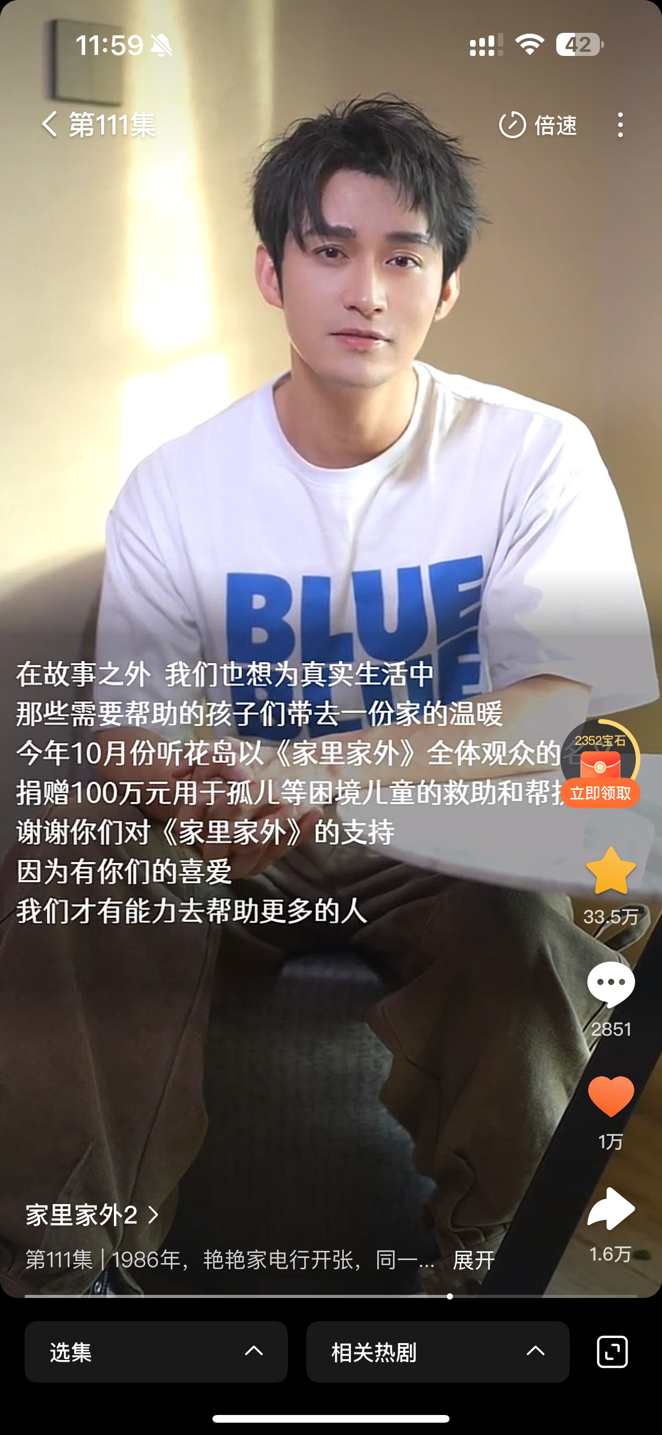评分top1的短剧杀回来了终于等到这部年度宝藏短剧!《家里家外2》以111集的故事,将邻里情、家庭爱娓娓道来。川渝籍演员全员在线,方言对白自带生活气息,从女性互助到代际和解,每个议题都戳中当下观众。它证明好短剧不必依赖强冲突,扎根生活的真情实感,才是最动人的流量密码。片尾更是提到参与慈善公益,把温情传递的好剧值得我们推荐!