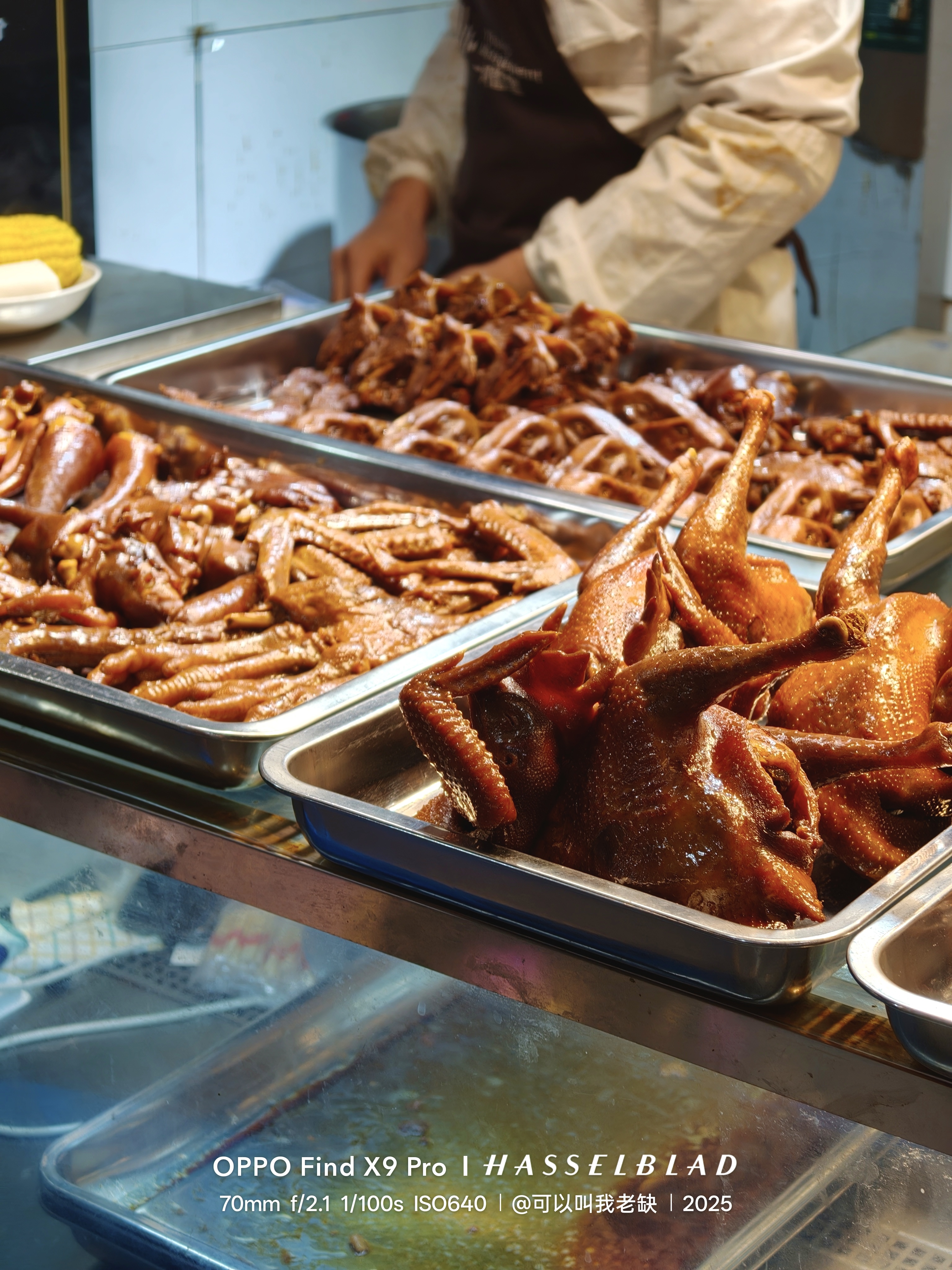 杭州采荷农贸市场。面积不大,摊位也没有想象的多,不过各种烧腊卤味很适合打包带走OPPO Find X9 Pro的潜望长焦简直就是为了这个场景而生的:焦内如烧鸡般嫩滑,焦外像甜卤汁一样化开,色彩浓而不艳,细节饱满而不腻,可以说是色香味俱全了。最后,想问一下图9 是臭豆腐吗?看着有点吓人 OPPO