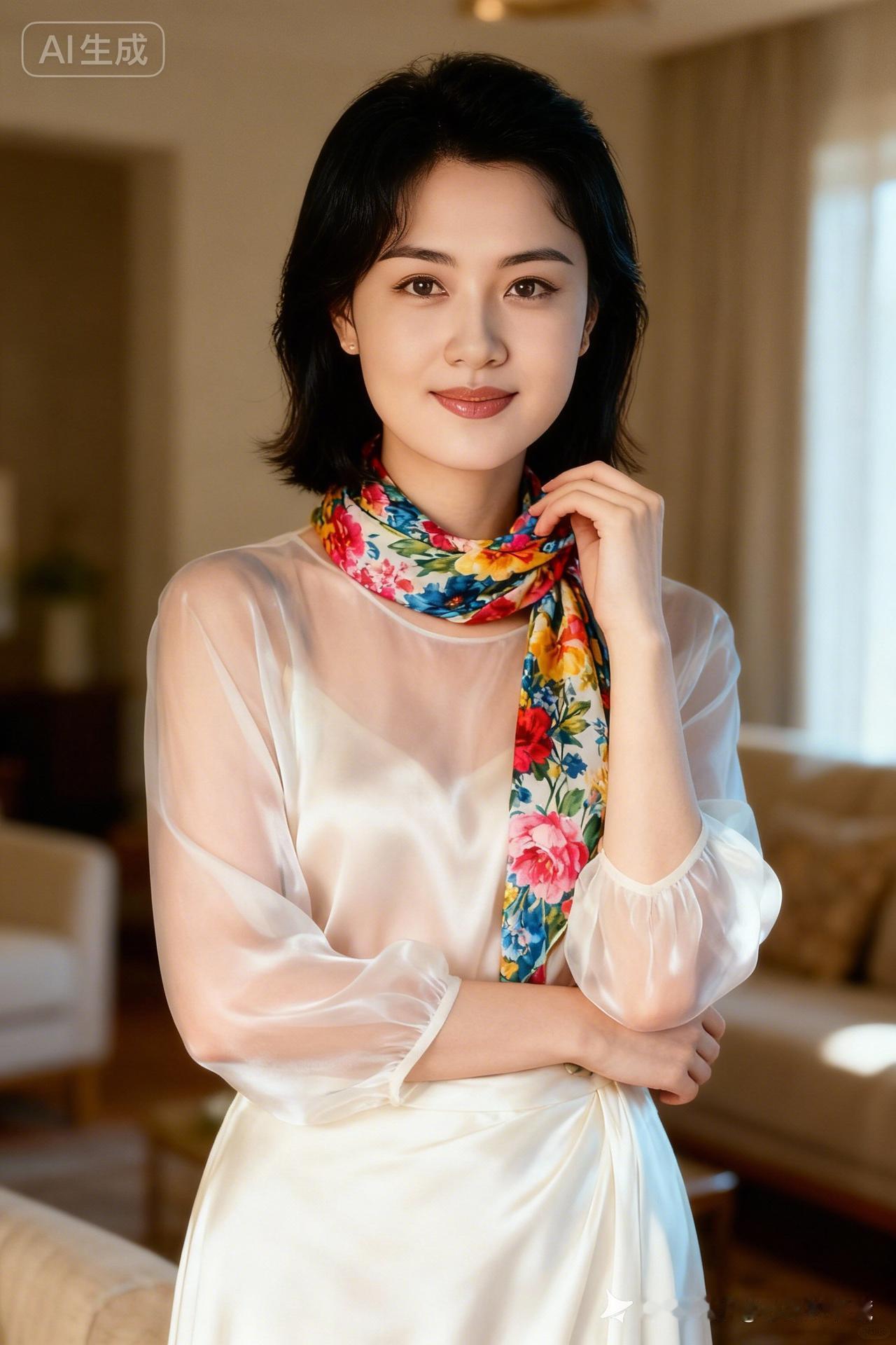 温柔优雅的少女,花色丝巾点缀,尽显时尚魅力!🌸💃
