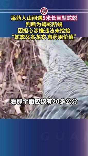 【阳江山间惊现5米蟒蛇蜕,采药人扭头就走:这“龙衣”可捡不得!】 广东阳江一采药人深山采药,突遇5米长的巨型蛇蜕挂在树丛间,活像一条“空壳巨蟒”!老中医看了都眼亮——这可是中药里的宝贝“龙衣”,治皮肤病、明目祛风都是好物。 但这位大哥愣是没伸手:“国家保护动物的蛇蜕,捡了可能犯法!”原来野生蟒蛇全是“重点保护对象”,连蜕的皮都受法律严格监管,私自买卖可能“刑”啊! 网友调侃:“蛇大佬留件衣服都要备案”“建议原地开博物馆门票”。话说回来,深山遇蛇蜕别心动,先打电话给林业局——保护动物,连皮带壳都得守规矩!