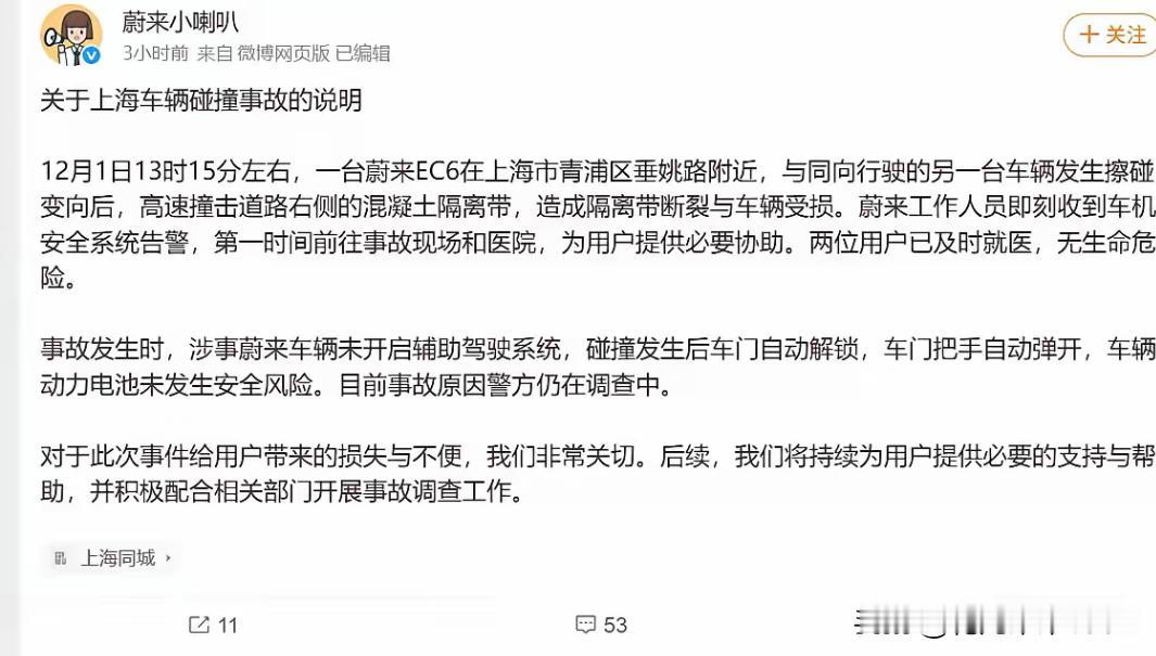 关于蔚来ec6的事故,有一点肯定是没毛病的,就是这ec6真的很安全,车门解锁,车