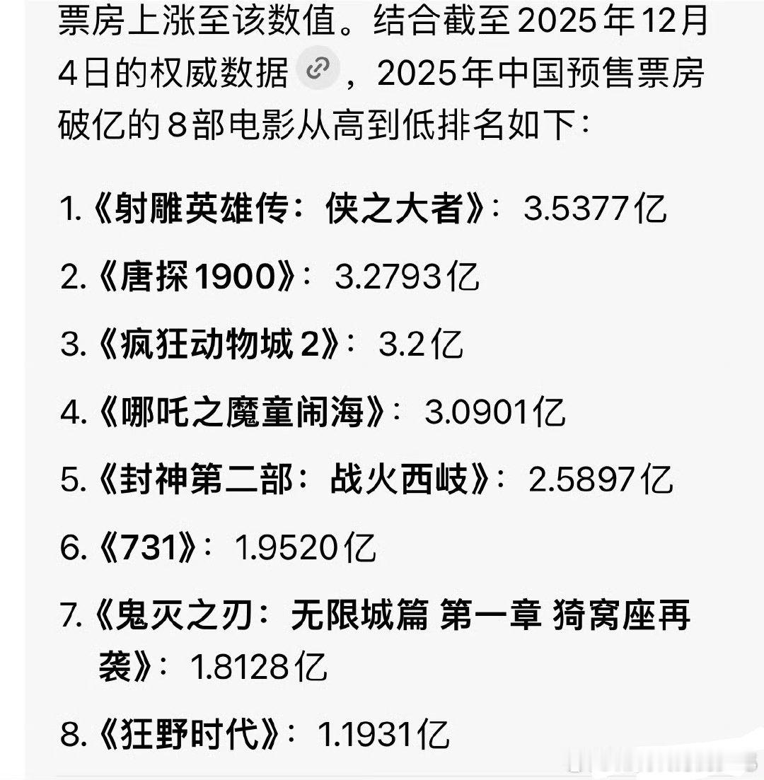 今年➕得闲謹制就是9部电影预售破亿!还有不到2天时间!得闲谨制到第八应该是可以的