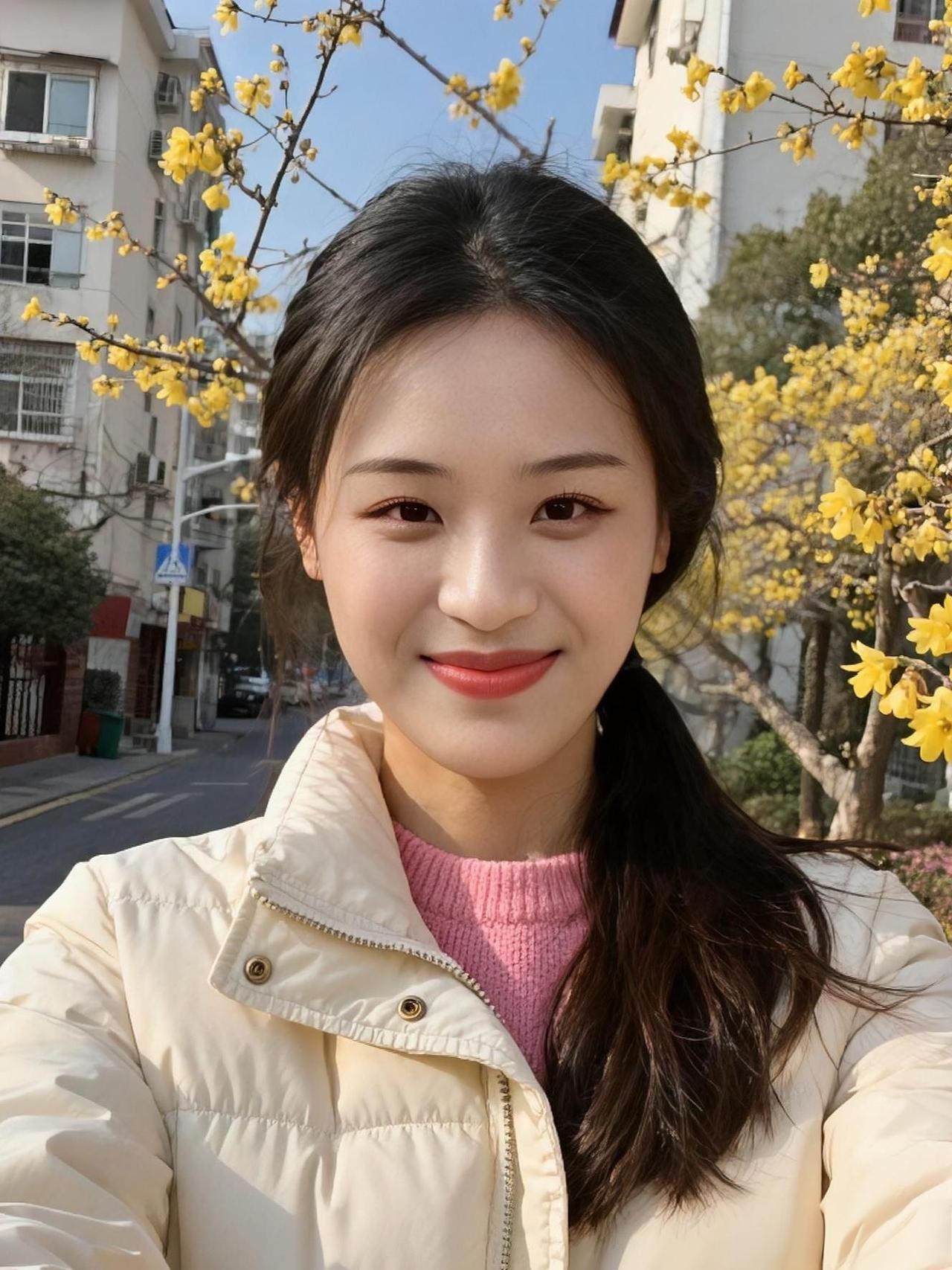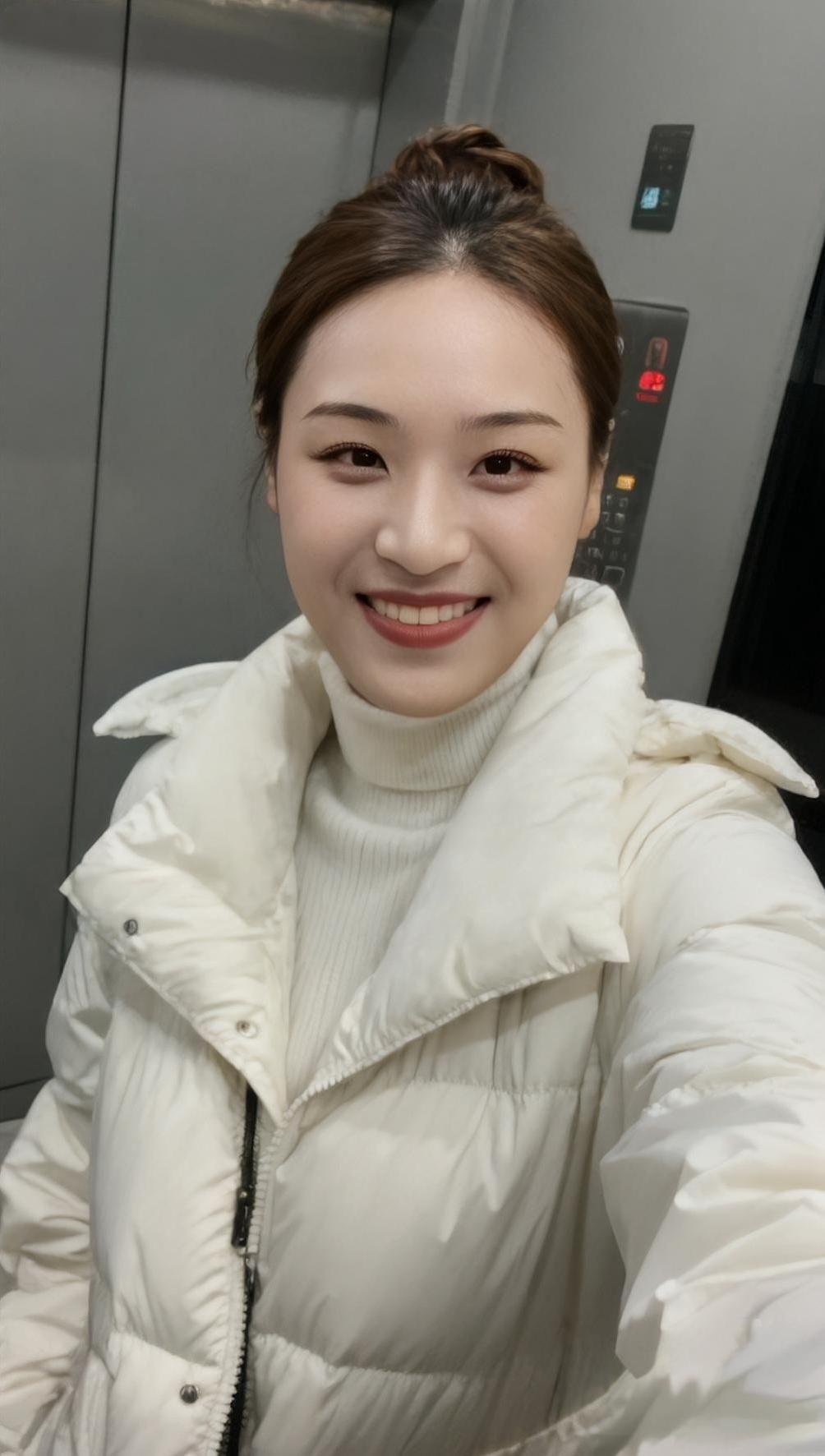 风揉碎阳光落满肩, 鹅绒裹住半程暖。 春枝偷藏冬时笑, 电梯镜里星子软。 晚灯吻过黑发梢, 你是寒天小团圆。
