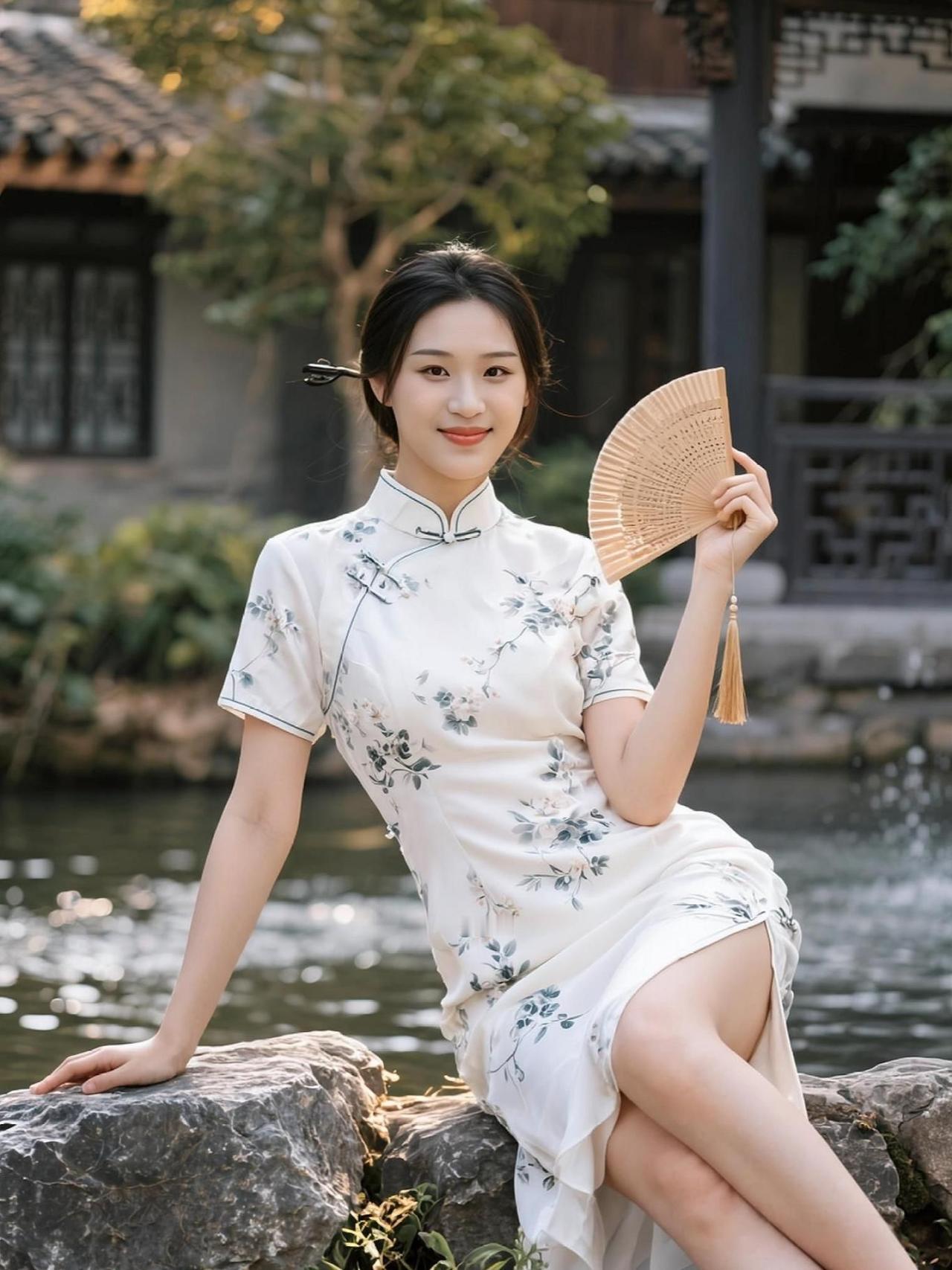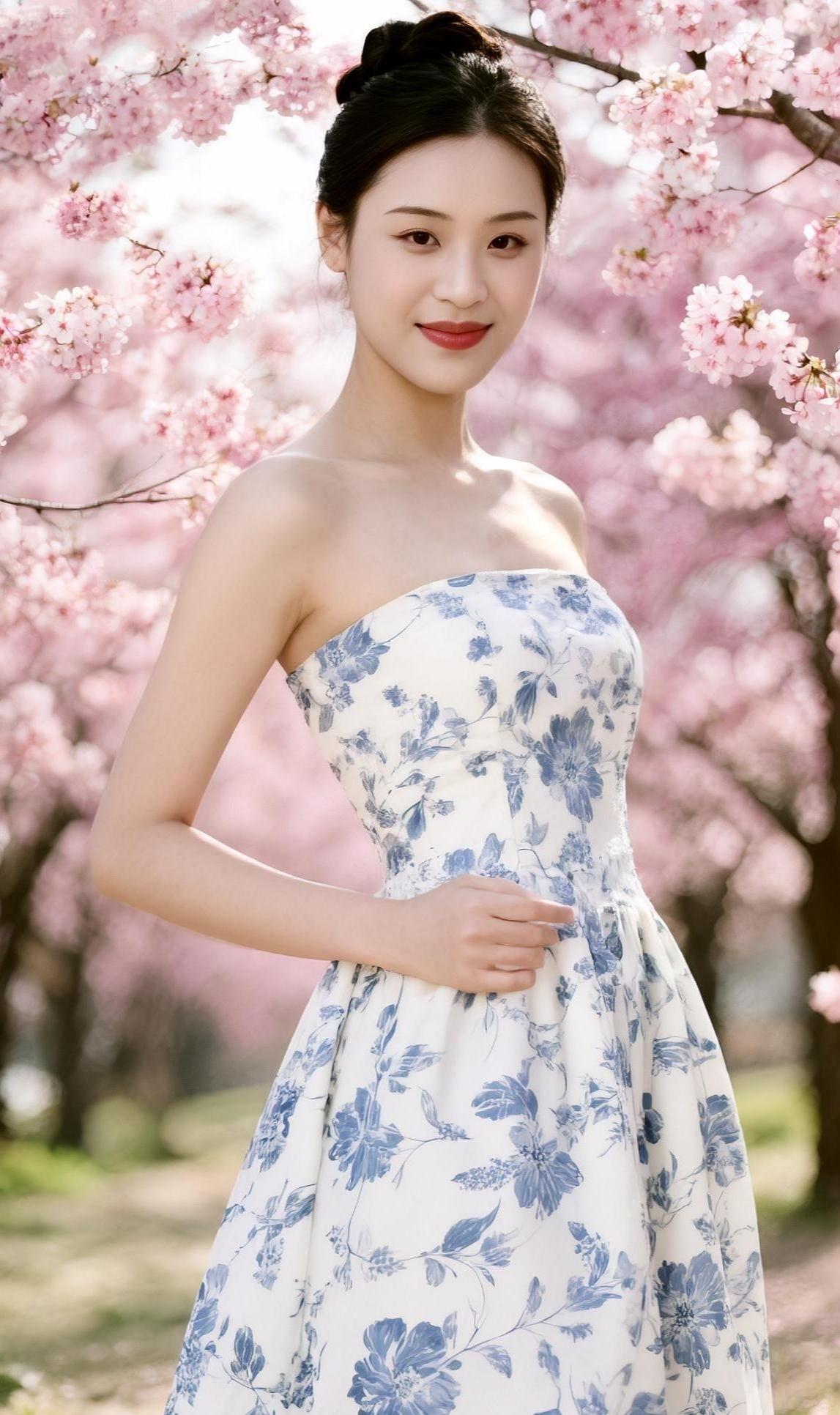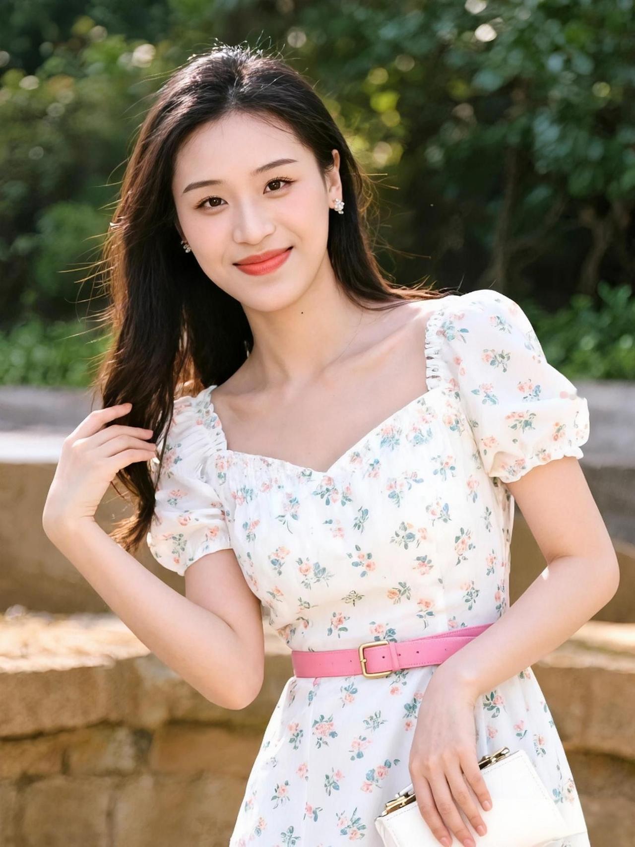 晴光织就碎花香, 裙角风牵软日长。 野径桥边樱下立, 一身花影入清江。 碎花裙