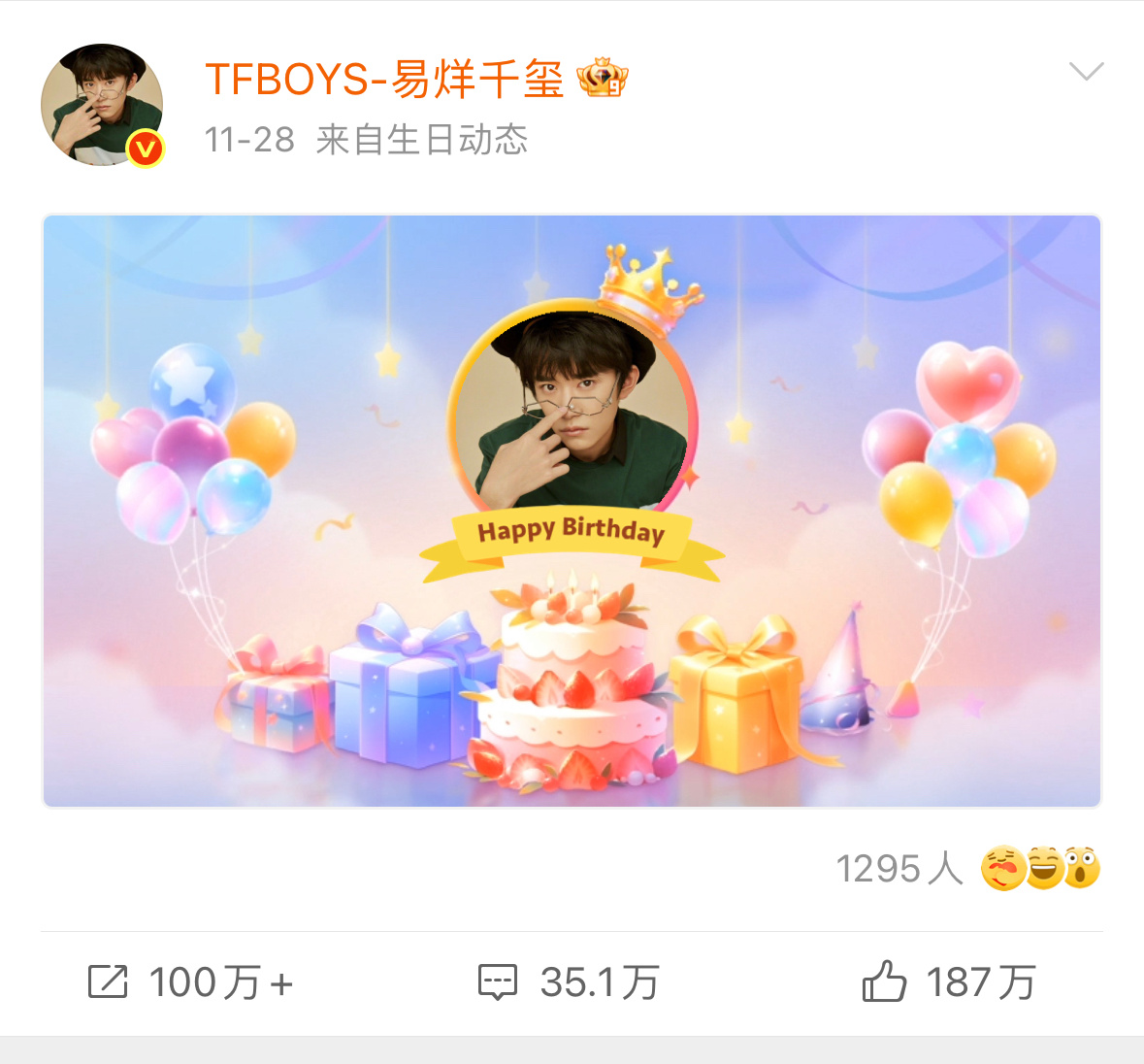王俊凯今天(12.4)祝福易烊千玺生日快乐了易烊千玺生日是11.28还蛮体面的了