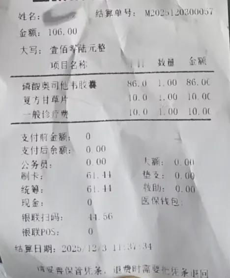 甲流买药懵了!乡卫生院 86 元奥司他韦,网上居然才 9 块?! 在村里休息!女朋友突然甲流发烧,急急忙忙带着在重庆老家车田乡卫生院买药,一盒 10 粒装的奥司他韦收了我 86 块! 当时没多想,回家刷手机才发现 —— 同款珠海同源的奥司他韦,网上平台药店居然才卖 9 块钱!差了快 10 倍啊!赶紧找卫生院要说法,人家说 “按卫健平台采购价卖,没加价”,联系厂家更离谱,说 “最近流感卖爆了,最高能卖 135”… 后来问了成都的朋友才知道,市面上其他厂家的 10 粒装奥司他韦,药店普遍才 20-60 块,之前炒到一两百现在都降价了。 原来网上 9 块的是国家集采药,以量换价才便宜,卫生院的是非集采款,供应链不一样,但作为大冤种,急着给女票用药时看到这差价,真的又气又慌! 👉给大家提个醒: 奥司他韦是处方药!必须凭处方买,别乱囤 买之前多对比:社区卫生中心 / 电商平台(认准正品保障)可能有低价集采款 遇到差价大的情况,保留购药凭证,可打 12315 咨询 你们给孩子买奥司他韦花了多少钱?有没有遇到过这种差价离谱的情况?评论区聊聊!别让更多家长花冤枉钱! 甲流用药攻略 药品价格争议 看病省钱技巧
