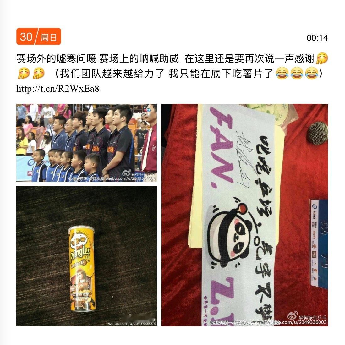 存在于樊振东微博里的球迷小合集哥很爱我们。