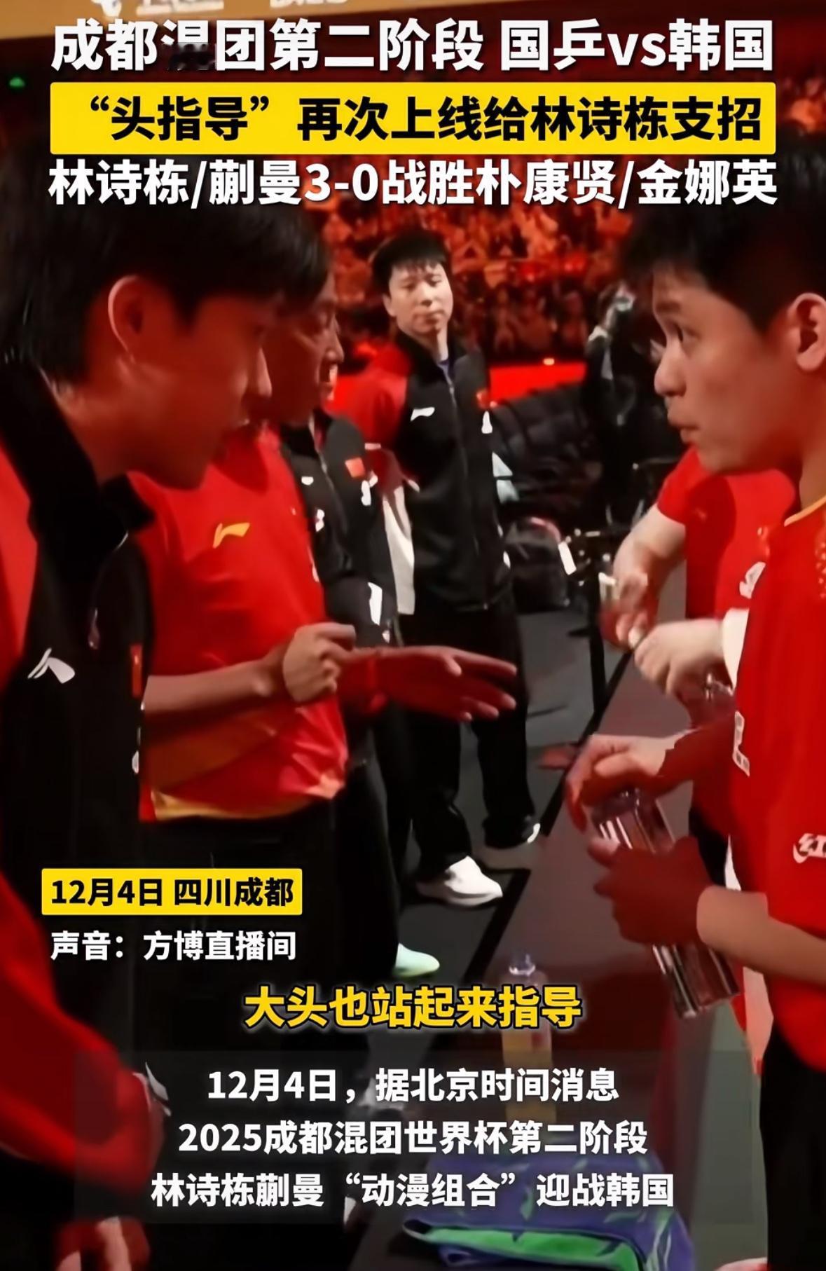 王楚钦秒变王指导给林诗栋支招—动漫组合零封韩国组合 12月4日,成都混团第二阶段 中国队8:0劲敌韩国队, 混双动漫在第二局遇到困难时, 王楚钦亲自给林诗栋出谋划策, 国乒团结一致, 真的很好👍! 肖战指导说过, 莎头组合无条件输出技战术给 动漫组合, 动漫哪里有欠缺, 四个人还经常在一起复盘, 莎头,动漫两队混双, 可单打, 可混双, 可女双, 可男双, 想起以前马龙指导王楚钦的画面, 国乒的传承,团结一心, 共进退! 王楚钦身兼多职, 男单,男双,混双, 还能在场外指导, 真棒👍……