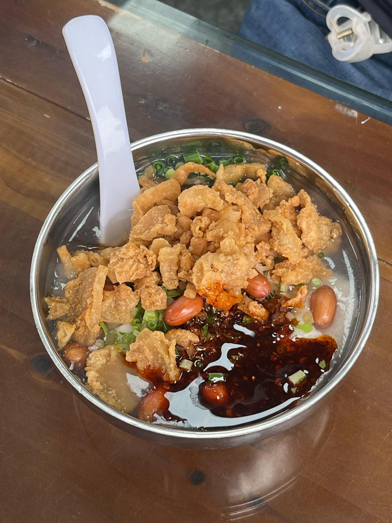 开着蔚来ET5T先在路边找个店吃饭啦,这里的早餐店是真少啊,不过终于碰到一家现做