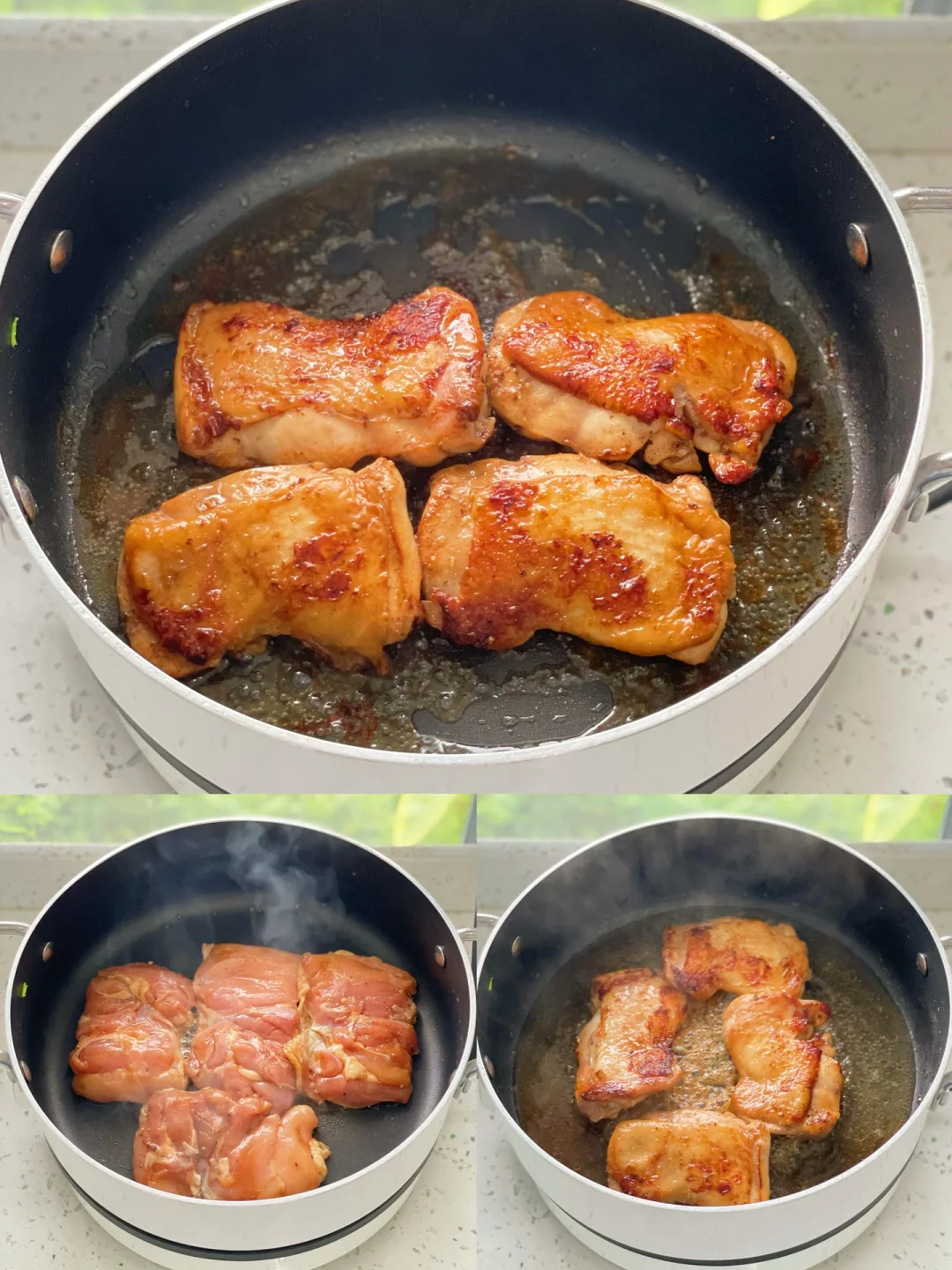 2️⃣不粘锅不需要放油,鸡皮面朝下