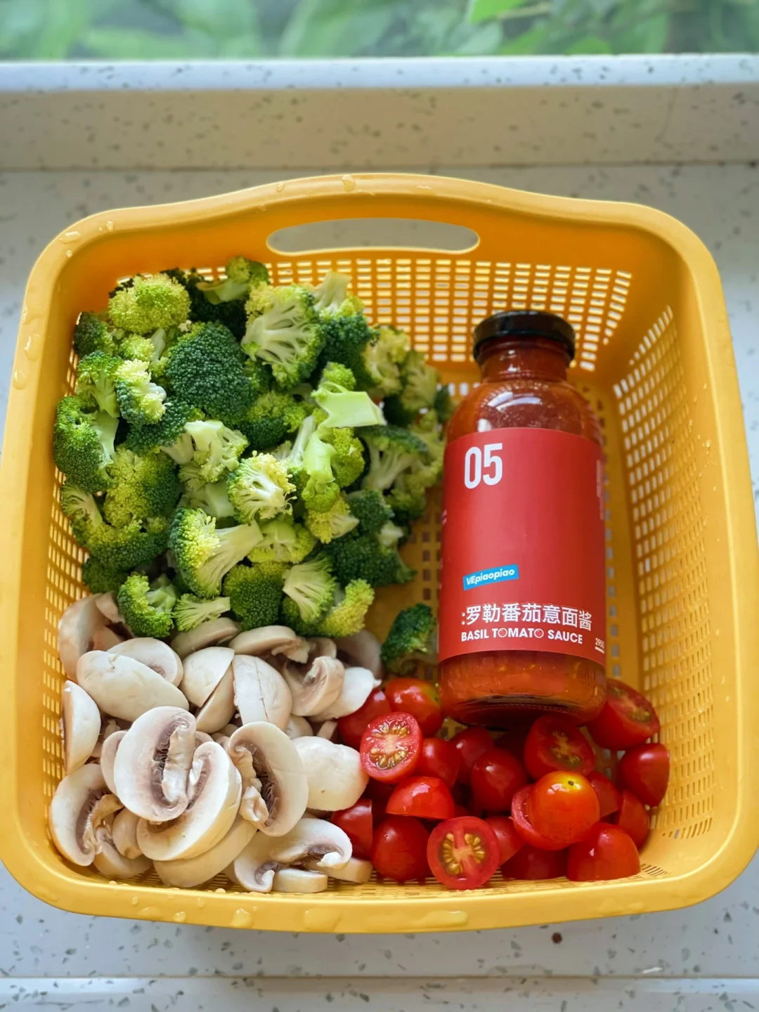 罗勒番茄酱|通心粉|圣女果|口蘑|西兰花