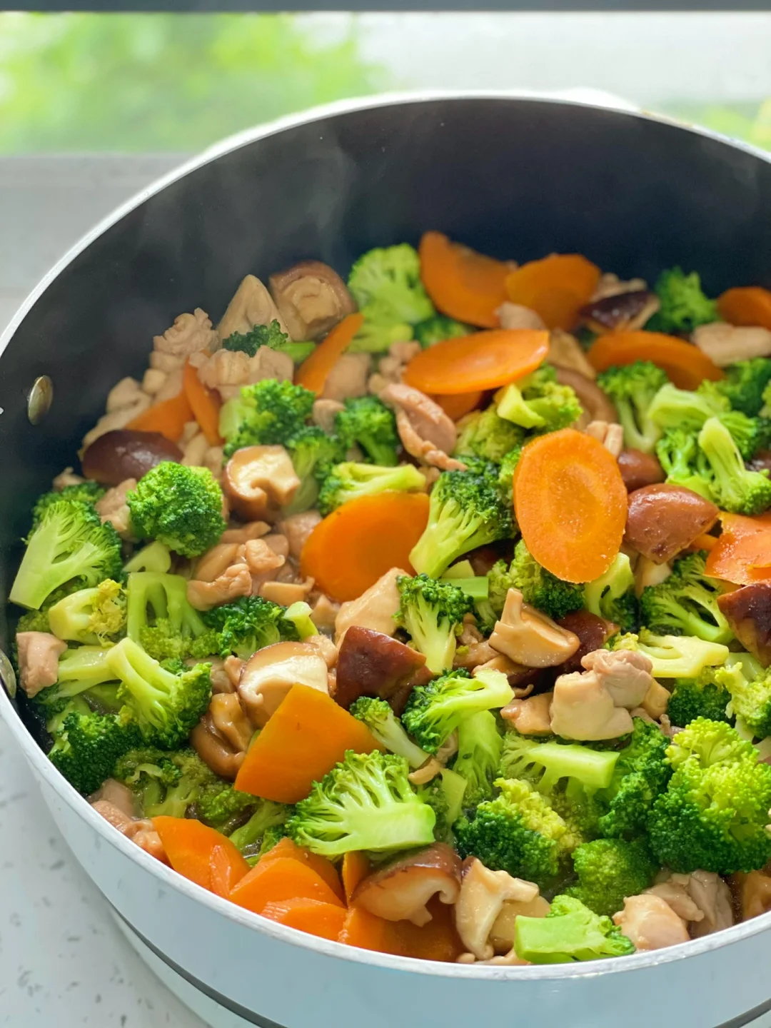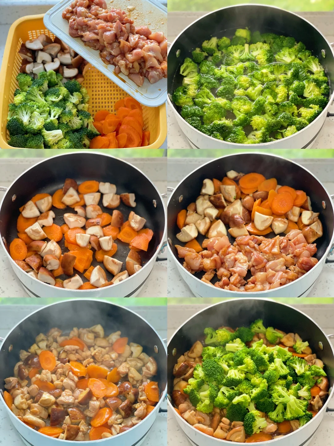 西兰花|胡萝卜|香菇|去皮鸡腿肉|蚝油|生抽|盐