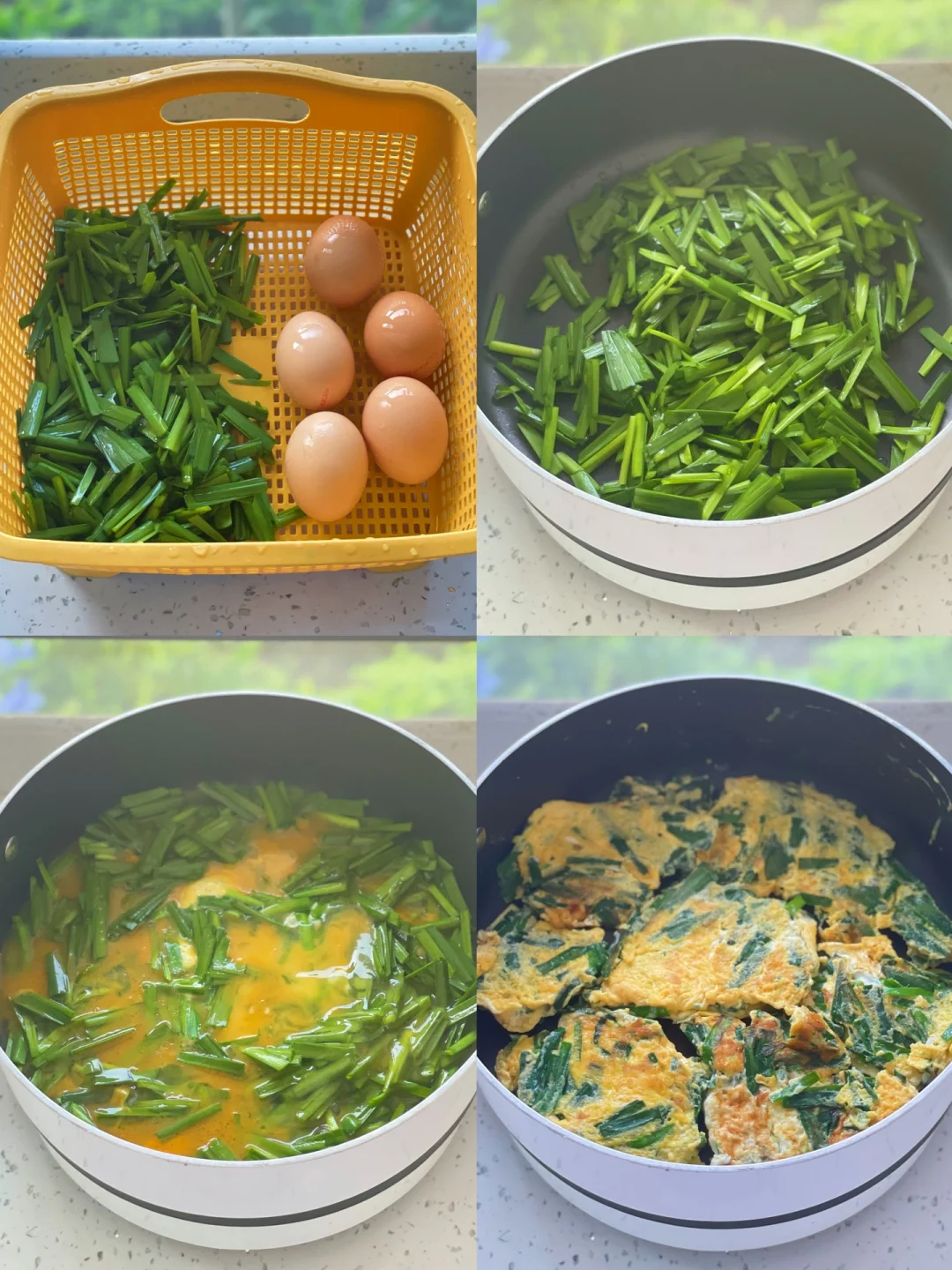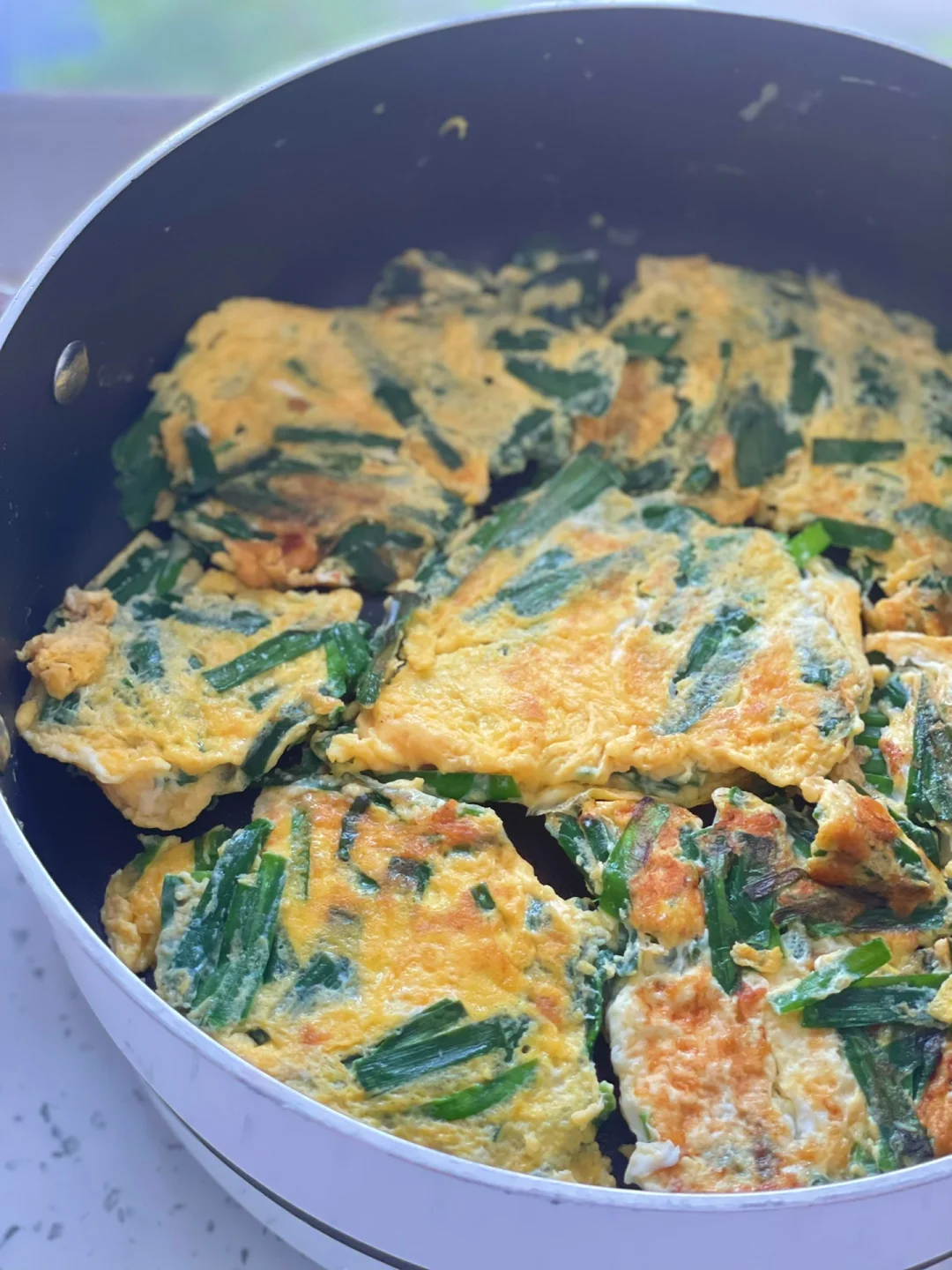 3️⃣加入打散的蛋液,煎至两面金黄即可