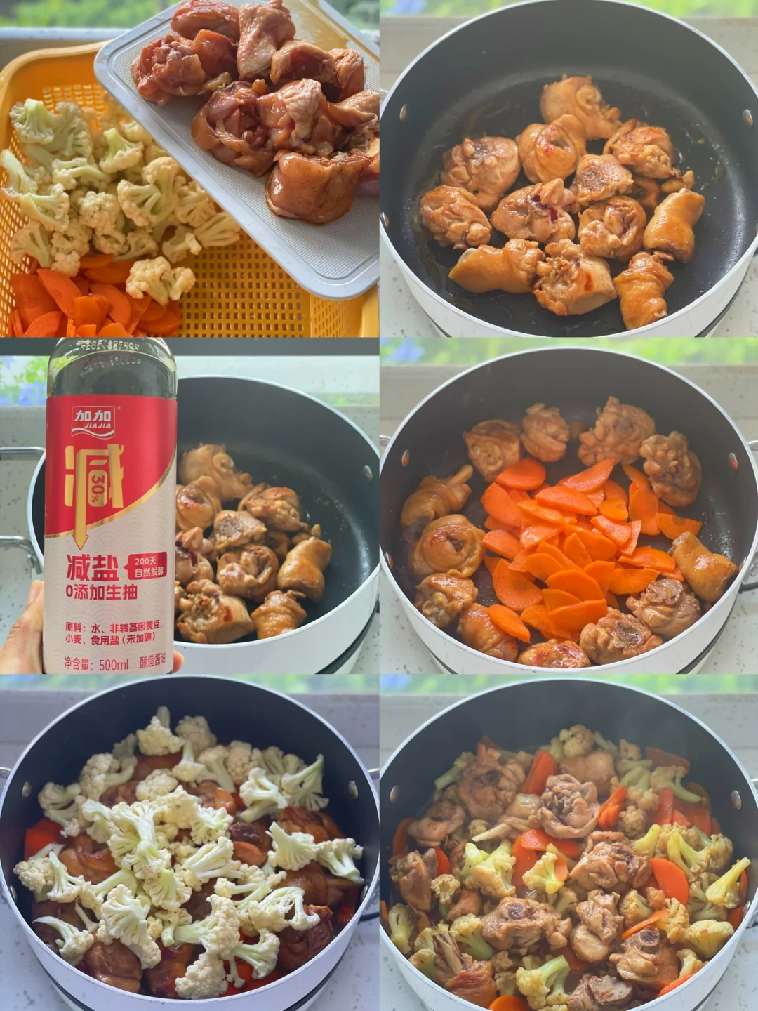 花菜|胡萝卜|鸡块|加加减盐0添加生抽|五香粉|蚝油