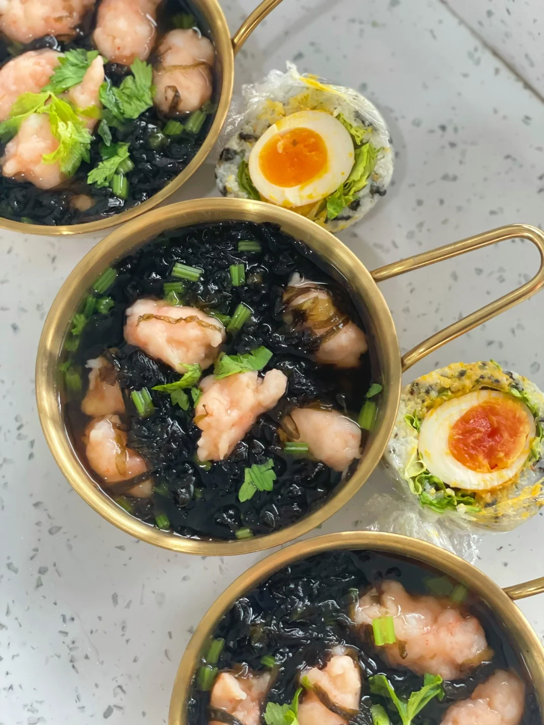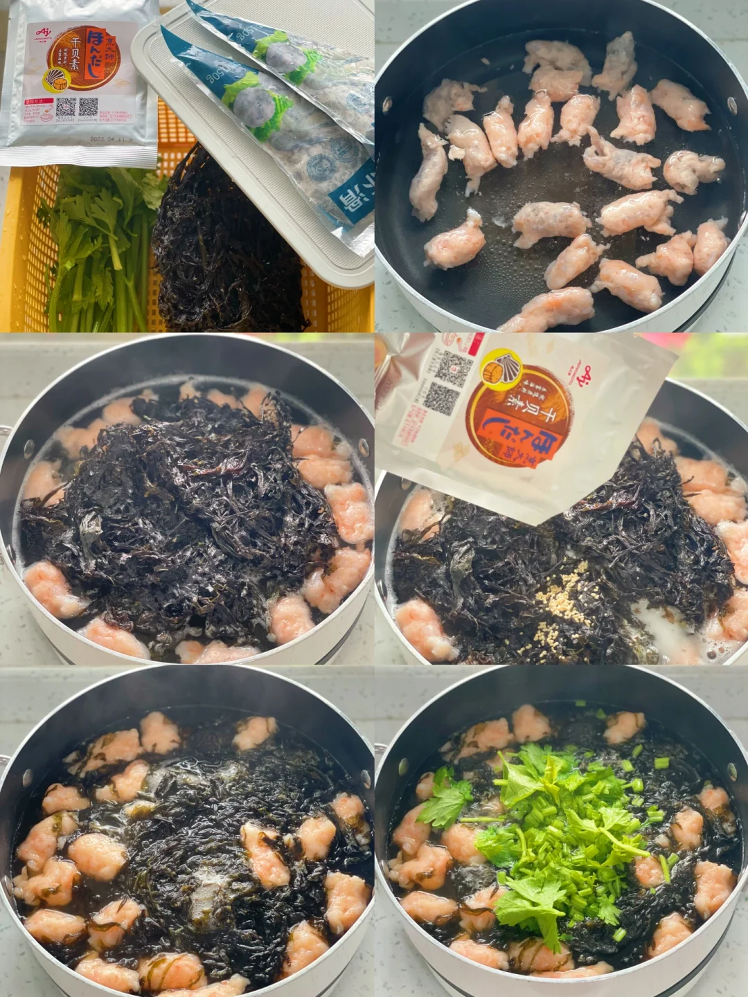 3️⃣虾滑变色浮在水面后加入紫菜、烹大師干贝素半包调味