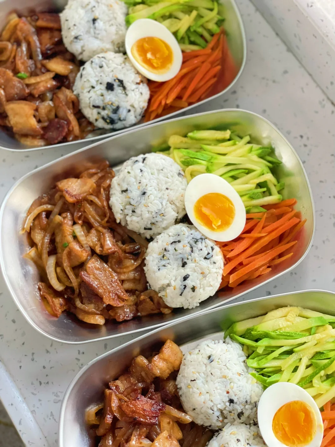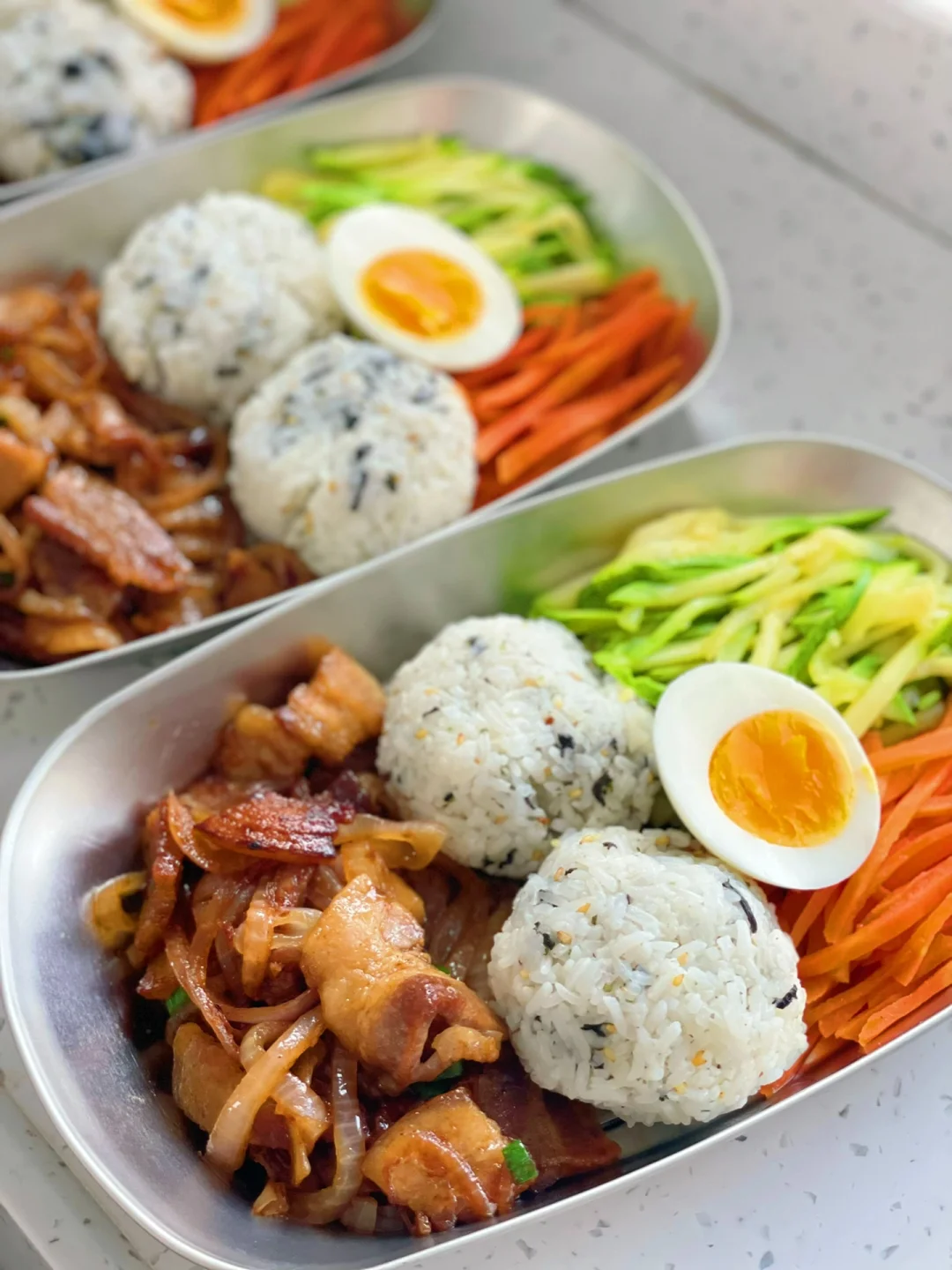 ❤今日的五花肉还是比较油腻的,所以蔬菜搭配了水煮西葫芦丝、胡萝卜丝,水煮没有额外加油,就放了少量盐调味。蛋白质再来半个溏心蛋。碳水是海苔芝麻拌饭。