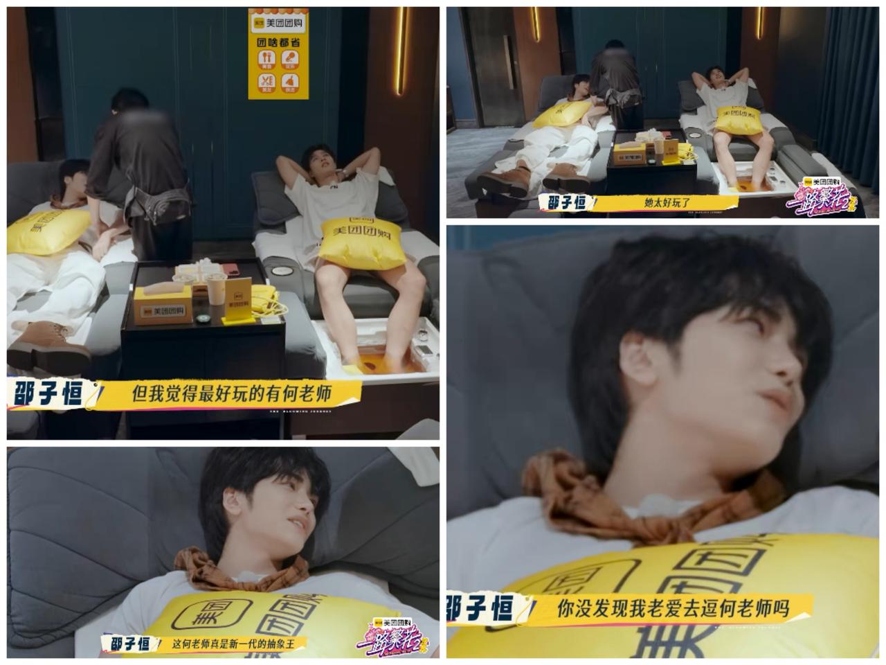 邵子恒,柯淳泡脚按摩聊天, 嘴上说喜欢每个姐姐, 但是这个细节暴露 他们的真实想法。 邵子恒好奇柯淳跟姐姐们相处那么多天, 对于姐姐们的印象是怎样的。 他们各种“端水”。 网友以为邵子恒,柯淳都比较喜欢刘嘉玲, 理由是他们吃宵夜只邀请了她。 但是邵子恒第一个想到是何赛飞 强调他最喜欢逗何赛飞, 理由是对方太“抽象”了。 你说什么人会第一个出现在你脑海里, 不是最最讨厌的人就是最喜欢的人, 所以呀, 邵子恒在所有姐姐里面, 应该最喜欢何赛飞, 不然他都不会经常逗她, 你说, 你讨厌一个人, 会想着跟她有过多接触吗? 何赛飞当初面对堵车, 当场就敢质问导演组, 邵子恒目睹了整个过程, 但是他一点都不反感, 还跟何赛飞一直说说笑笑, 可见何赛飞的直爽人格魅力 吸引了邵子恒。 柯淳主动强调越来越了解宁静, 觉得她“人来疯”。 你说, 如果他不关注宁静的行为, 私下不跟宁静多相处, 何来“人来疯”的结论呢? 看来何赛飞和宁静那么直爽的性格, 最受柯淳和邵子恒喜爱。 其他姐姐们也很好, 但是有些姐姐就喜欢一直“端着”, 玩不了一起, 不够解放天性。