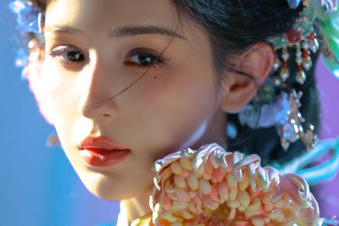 哈妮克孜刚发的新图直接美到我失语!这组 “五彩斑斓” 新中式写真也太绝了 —— 蓝调国风裙装衬得她眉眼更浓艳,鬓边堆的花簇像从画里摘下来的,尤其是眼下那道细闪 “泪痣”,又媚又灵! 尤其是有几张怼脸特写,眼尾垂着的碎钻和唇上的红,直接把 “易碎感美人” 焊在脸上了! 她真的好适合这种浓墨重彩的国风造型,既有新疆美人的立体骨相,又揉进了中式古典的柔媚,坐在桌前托腮那帧,像刚从《簪花仕女图》里走出来的仕女,连手里的团扇都裹着花簇,氛围感直接拉满! 哈妮克孜每次国风造型都能戳中审美点,这组图已经存成壁纸了!你们觉得这组算不算她的国风造型 TOP1?