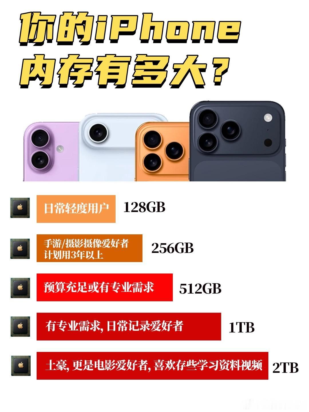 你手里的iPhone是多大内存? 我的iPhone16pro才256g,才过了半年,已经内存告急了😭你们的iPhone内存有多大?够不够用啊...我觉得自己算是轻度用户吧?就是照片有点多,然后绿泡泡不舍得删,两个直接占了快200g😮💨