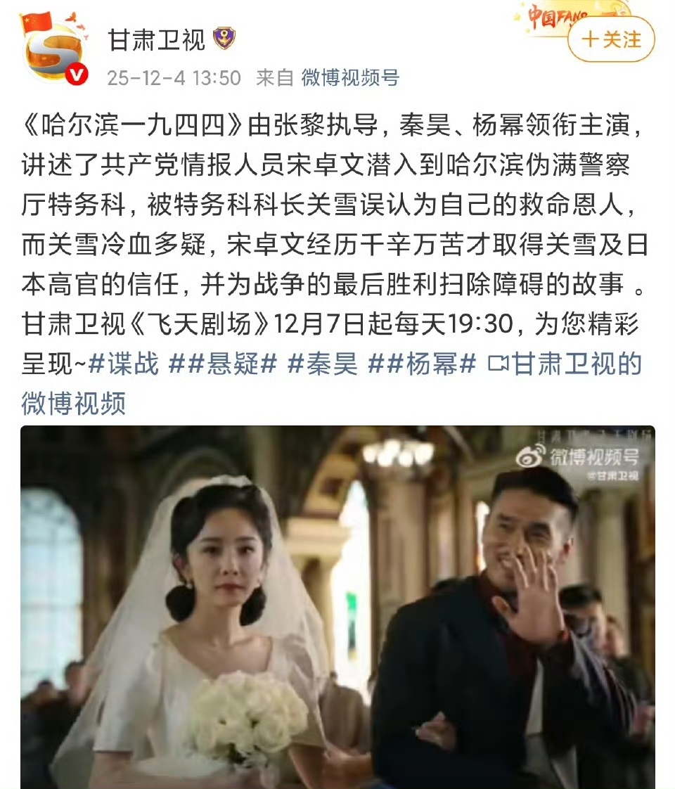 杨幂杨幂哈尔滨一九四四上星播出杨幂哈尔滨一九四四上星甘肃卫视杨幂《哈尔滨一九四四》上星播出啦!