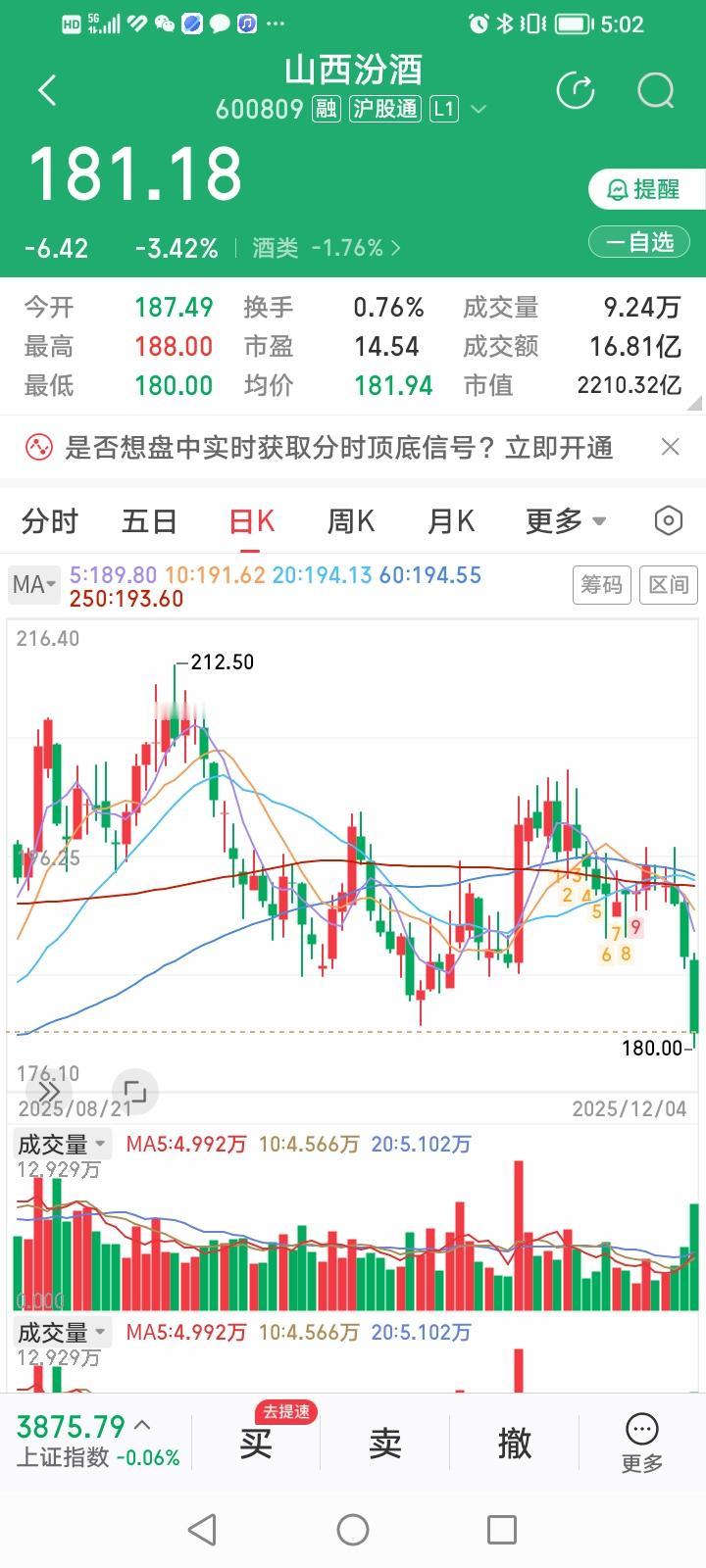这份券商评级推荐研报靠谱吗?居然对山西汾酒的最新评级是:强烈推荐,目标涨幅51.92%,也不知道咋测算出来的。 评级报告甫一出炉,今天山西汾酒股价大跌3.42%。当然山西汾酒今天股价大跌可能是受股东华创鑫睿减持结果公告的影响,与研报无关。 按2024年年报业绩计算,山西汾酒的静态市盈率在18倍左右,如果今年的业绩能稳住不出现下滑,可能2026年真有可能形成山西汾酒业绩步入新增长周期的拐点。 从2025年三季报披露的业绩看,茅五汾泸四大名酒只有贵州茅台和山西汾酒还勉强维持前三季度净利润的正增长率,算是韧性较强的。 静待山西汾酒2025年年报披露完成再作定夺。