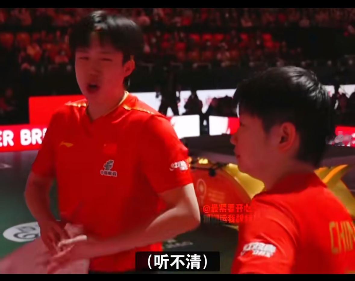 孙颖莎/王楚钦激烈讨论技战术—肖战指导插不上话 成都混团第二阶段 中国VS法国 莎头3:0大布/袁嘉楠 局间,王楚钦 孙颖莎激烈讨论技战术,肖战指导根本插不上话! 大布发球, 孙颖莎提醒一下有闪光灯📸, 大布朝看台上比一个照相机📸, 莎莎真可爱, 热心肠的小女孩, 大布也是性情中人, 手部受伤后, 性格温和了许多, 莎头继续加油!