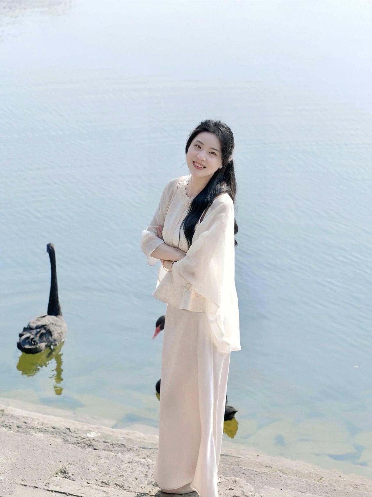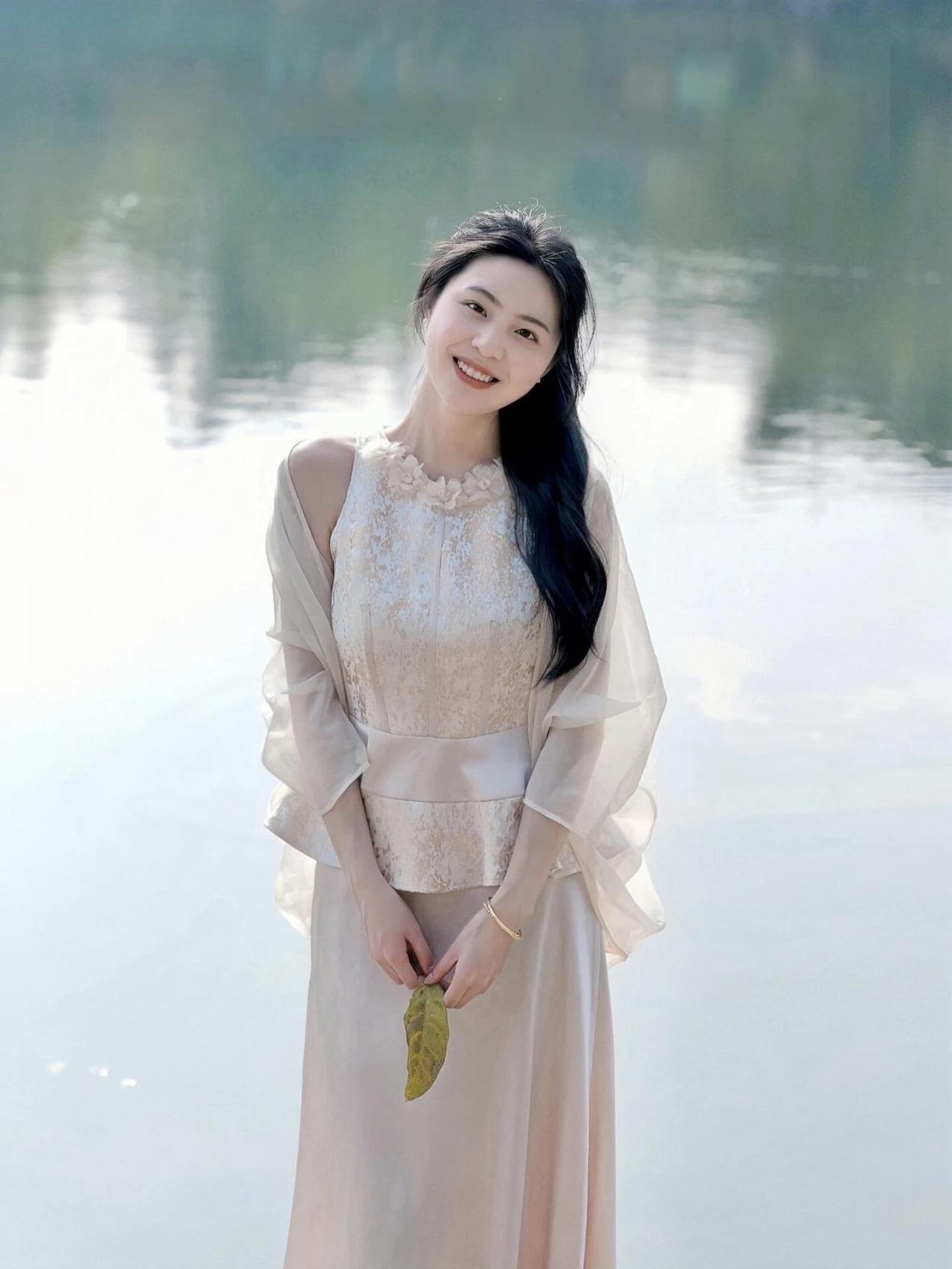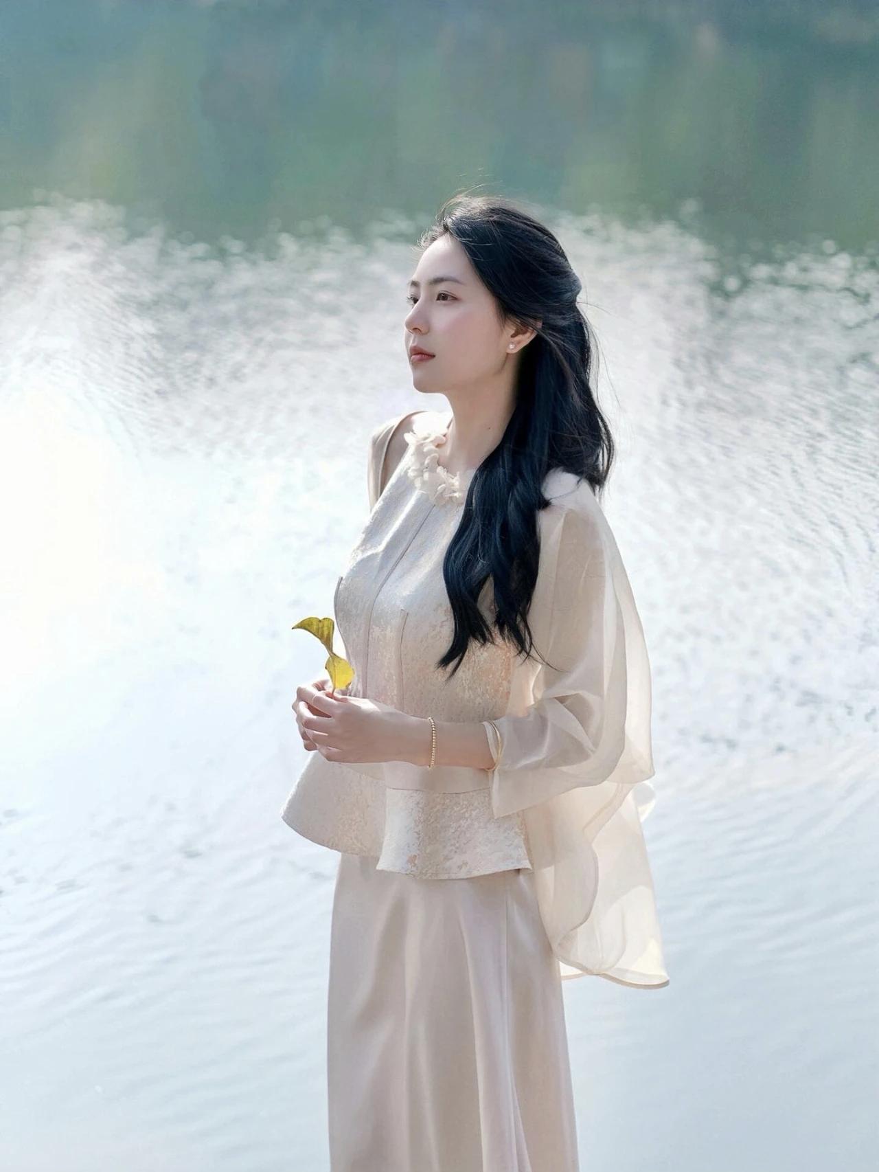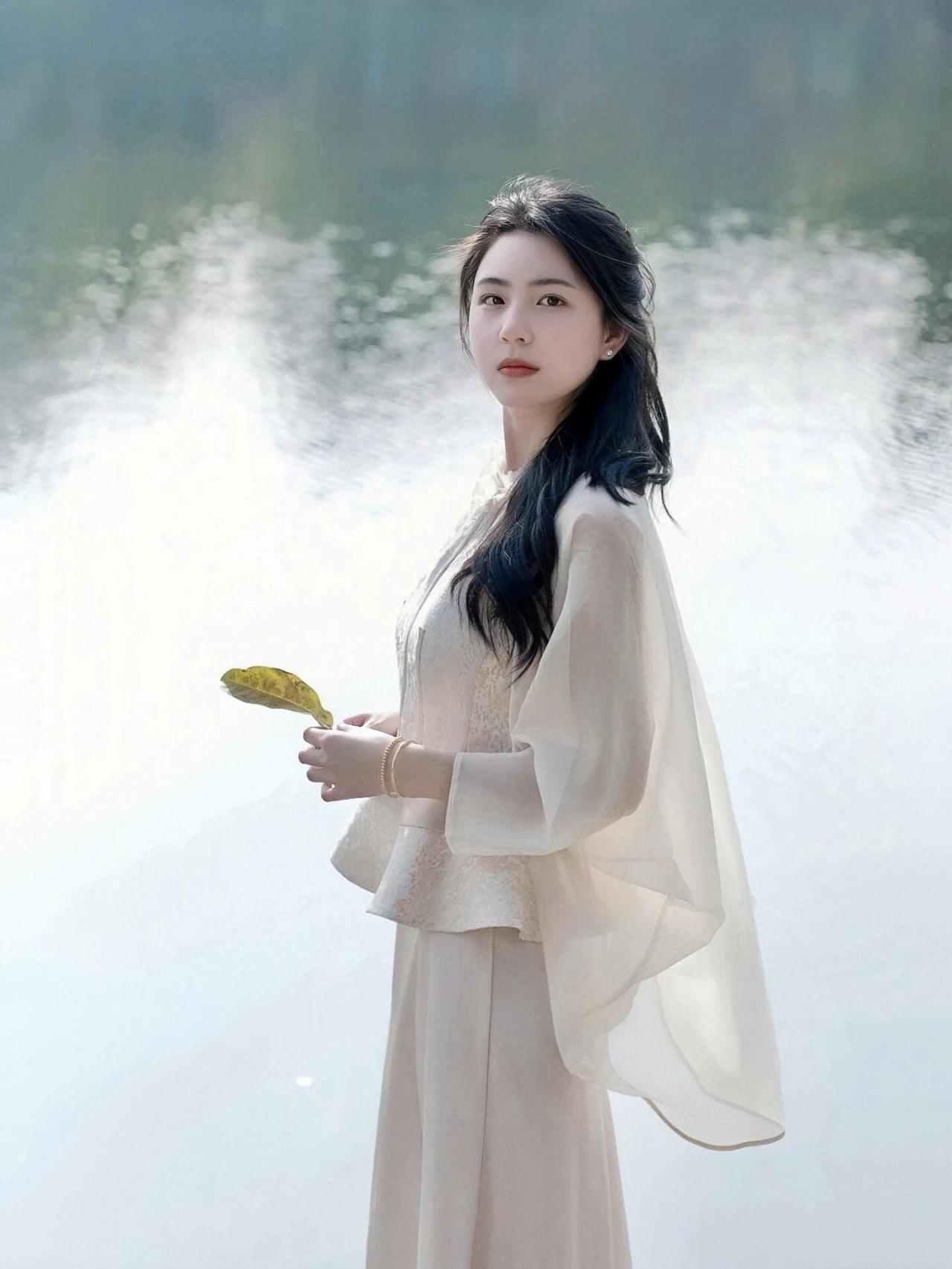 天然美女,湖边留影,圆脸确实可爱,Babyface你心里有没有特别清纯可爱的女孩