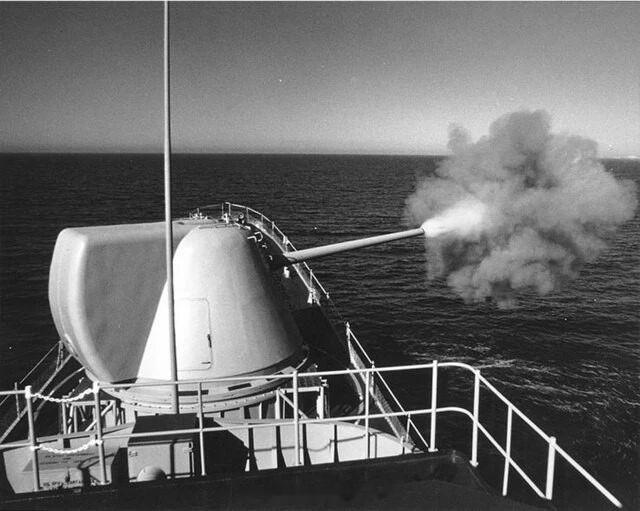 可在比054A还小的福雷斯特·谢尔曼级驱逐舰上安装的美制MK71型203毫米55倍径自动舰炮,重66.193吨,含75发待发弹重量为78.425吨,每分钟射速约12发。该炮的弹丸重达117千克,还可发射激光末制导炮弹。1975年4月-1979年,该炮在“赫尔”号驱逐舰上进行了测试,共发射过约2700发炮弹。受制于当时的技术水平,该型舰炮面临在中小型舰艇上射击精度不好、火箭增程弹精度差、难以为激光制导炮弹提供照射、当然还有太贵的问题,最终被卡特政府砍下了马。烽火问鼎计划每天认识一件兵器台海局势