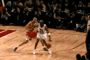 神之乔丹的全明星最后一投!乔丹的最后一次全明星,最后被科比的三罚两中拖进了加时,然后东部输了比赛,特制的MVP奖杯给了加内特。什么叫名画?这就是名画!这就是老流氓留给后辈的最后一张绝世名画。以马里昂的能力,已做到最大程度防守。本来这是万众瞩目的绝杀球,马里昂防的认真,帮主也投的完美,唯一不完美的是特制的MVP奖杯没有给到乔帮主,把完美的演出给毁了!