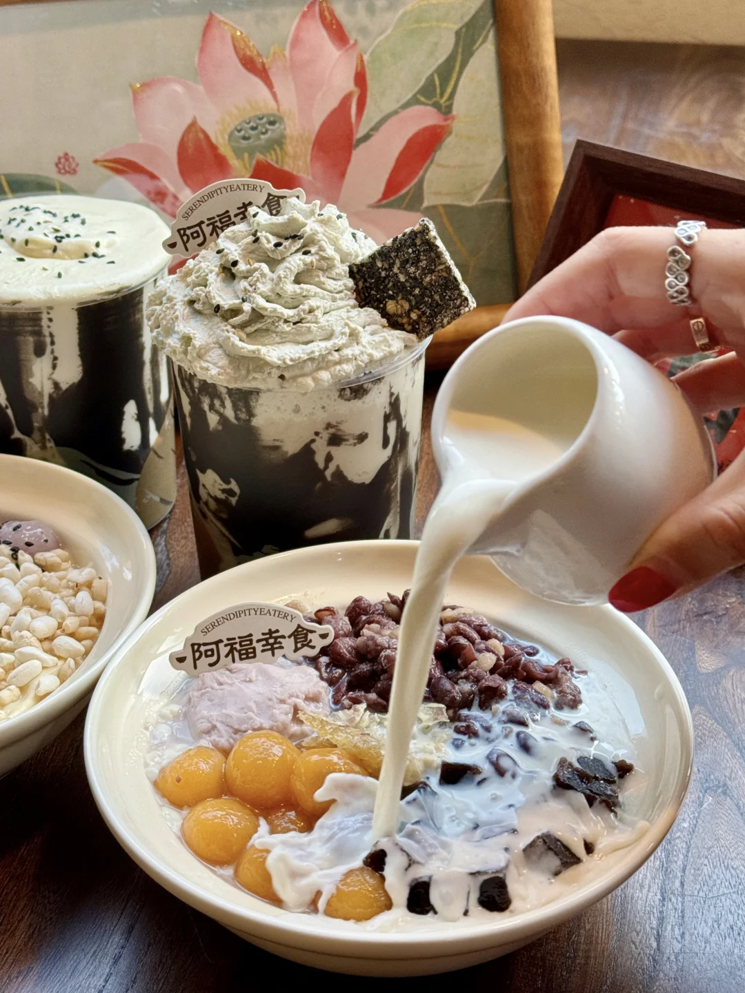 吃起来既有豆花的嫩滑还有黑芝麻的醇香!!凉而不冰超满足