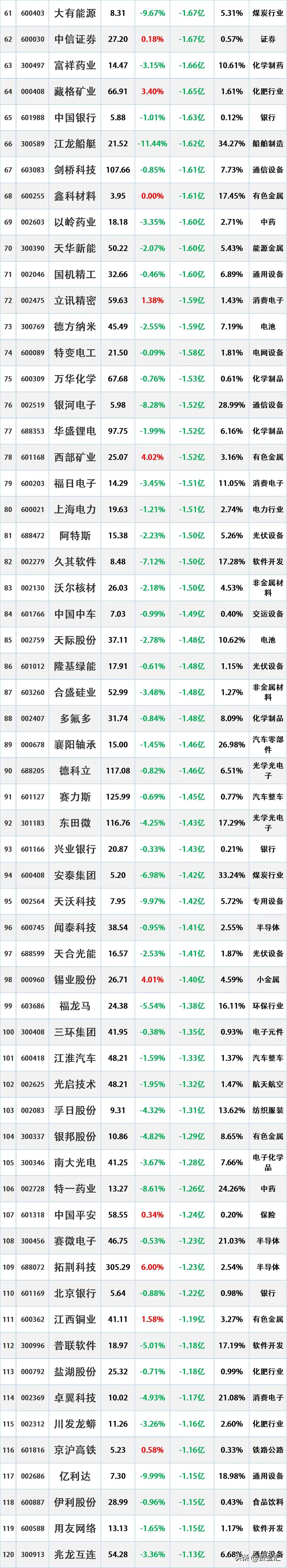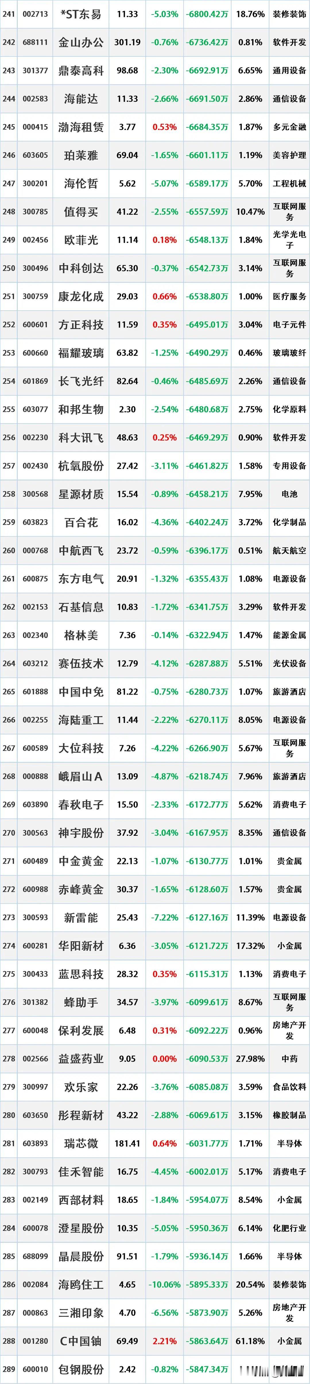 尾盘资金出逃,12月4日主力资金大幅流出的股票名单。 资金流出是指在一定时期内(如一天、一周等),主动卖出某只股票的资金量大于主动买入该股票的资金量。主动卖出是指投资者以买方的报价直接成交,显示出投资者对该股票的消极持有或抛售意愿。