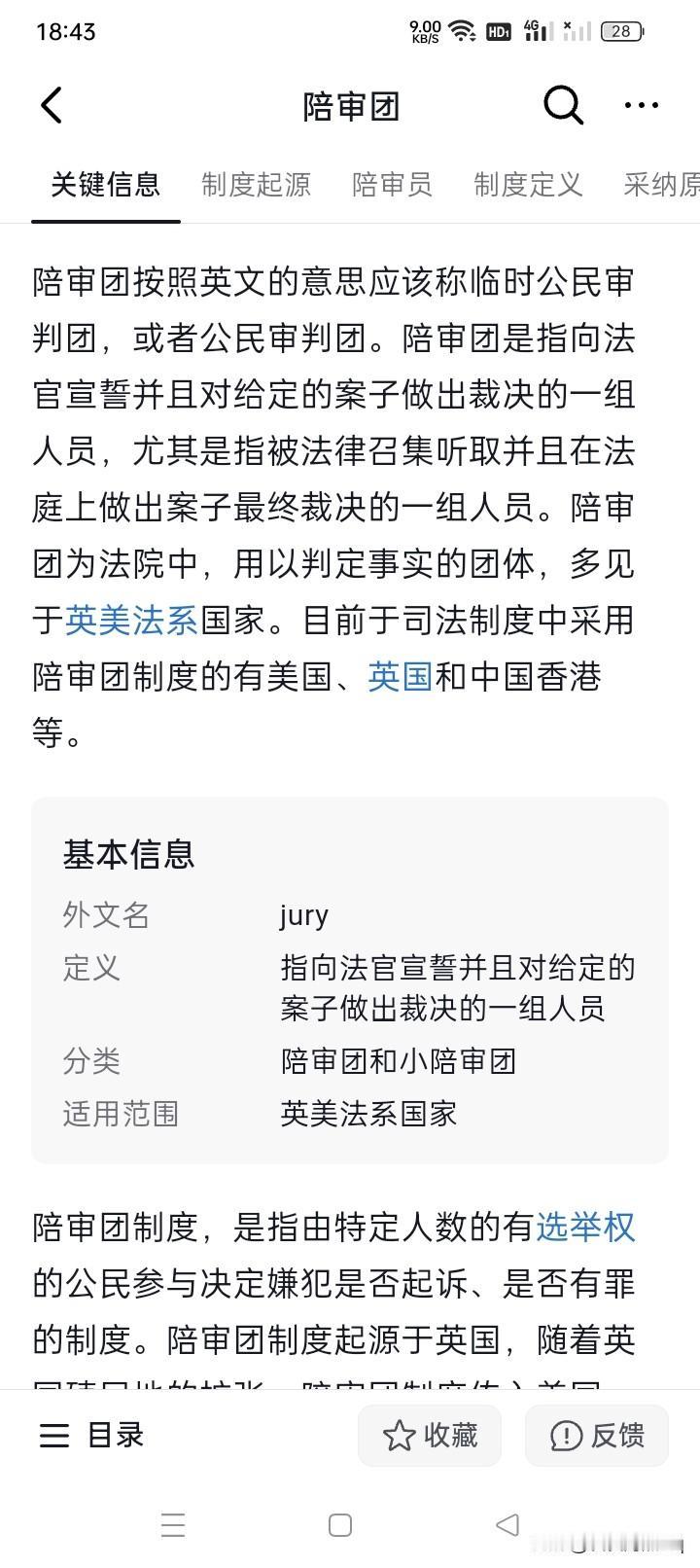 都蒙在鼓里? 在电影、电视剧中看到美国、英国等国家的法庭上,有看到陪审团的情况。不过,好像我们这里也有人民陪审团,但没有亲眼见过,即便是在影视作品中,也很罕见,特别是好像从来就没有看到过陪审团的成员对案件发言的场面。 刚刚之前,在抖音里看到讲这种陪审团的情况才知道,原来在英美法系中出现在法庭的所谓陪审团,实际上好像根本就不应该是叫陪审团,而真正应该叫的是公民裁决团,或者公民临时审判团。因为这个临时组成的团体在法庭的职责,是决定该案件最根本的问题,就是该受审案件究竟、是否违法或犯罪。而法官从事的工作,主要是主持法庭进行审判的程序和对案件进行解释,以及在公民临时审判团裁定有罪后,在适用法律的时候进行量刑等细节的角色。 这就是说,决定嫌疑人是否违法、犯罪的权力,好像完全在公民临时审判团手里,而不是在法庭的法官手里。简单的一句话,就是法官似乎根本无权对公民定罪,只有公民临时审判团才有权对同样是公民的人定罪。