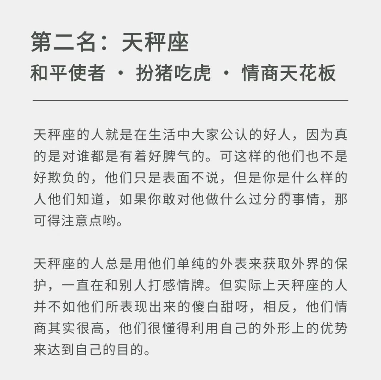 别被他们的笑容骗了!这三大星座,表面是温柔无害的傻白甜,实际上是隐藏极深的腹黑大佬。你以为你在掌控局面,其实早被他们安排得明明白白。 就像上周咖啡馆里,那个主动帮你续杯的巨蟹姑娘,指尖划过杯壁的弧度都透着恰到好处的体贴——你以为是偶遇的温暖,其实她早记住了你三天前随口提过的口味。 白羊座的“傻气”最具迷惑性:开会时抢着背锅的“憨憨”,转头就在项目报告里用数据让甩锅者哑口无言。他们的“不计较”从来不是真糊涂,而是在等一个让对方无力反驳的时机。 第一次合作时,你可能觉得天秤座同事总在和稀泥:“要不这样?”“大家都退一步?”直到项目结束才发现,所有关键节点的决策权,早被他用“商量”的语气牢牢握在手里。 巨蟹座的温柔像浸了温水的海绵——会记得你过敏的食材,会在你低落时递上热汤,却也能在三年后,用你当年无意中说的某句话“精准戳中”你的顾虑。这种对细节的偏执,既是铠甲也是武器。 当然,这并非星座的绝对标签——就像天秤若真心信赖一个人,会卸下所有防备,连拒绝都会直白得让你惊讶;白羊在亲近的人面前,反而会暴露孩子气的冲动。 现代社会对“攻击性”的隐性排斥,让这些星座的人演化出更隐蔽的生存智慧——比起直接的“我要”,“我帮你”的姿态更容易获得信任;比起当场争执,事后布局的“腹黑”,反而能减少人际摩擦的成本。 短期看,这提醒我们别用“傻白甜”的滤镜定义他人;长期而言,或许也让我们思考:所谓“腹黑”,有时不过是敏感者在复杂关系里,为自己和在意的人筑起的温柔防线。 就像开头那句提醒——当有人笑着说“没关系”时,不妨看看他指尖无意识敲击桌面的频率,那或许藏着比语言更真实的答案。