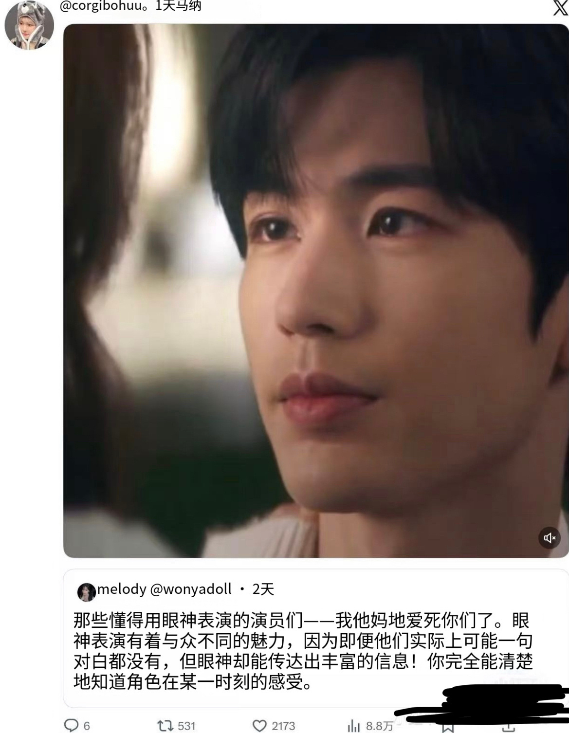 外网的超千万浏览量“关于全球演员的好眼神戏提名”讨论贴,张凌赫在其中获得高赞提名“没有台词,传递千言万语的眼神,你能准确地感受到角色此刻的感受”。张凌赫的好演技全球认证!