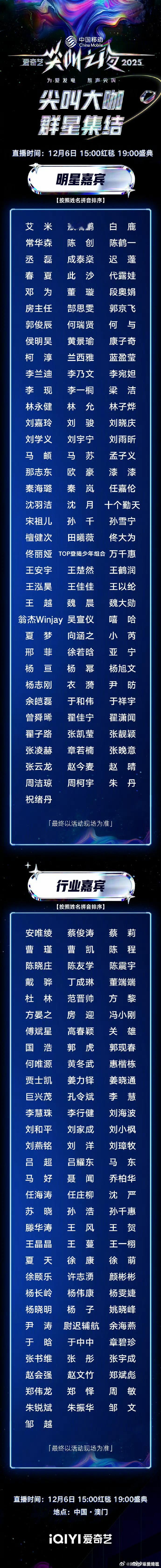 尖叫之夜明星嘉宾2025爱奇艺尖叫之夜明星嘉宾阵容官宣:杨幂,李现,白鹿,邓为,敖瑞鹏,刘宇宁,孟子义,宋祖儿,沈月,檀健次,田曦薇,王安宇,任嘉伦,TOP登陆少年,魏大勋,张凌赫,章若楠,曾舜晞,张晚意,赵今麦等,你最期待谁的红毯?