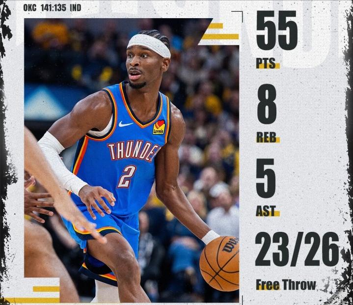 本赛季8位得分50+球员: 1、戈登——50分,6个罚球 2、马尔卡宁——51分,17个罚球 3、里夫斯——51分,22个罚球 4、穆雷——52分,5个罚球 5、马克西——54分,14个罚球 6、亚历山大——55分,26个罚球 7、约基奇——55分,16个罚球 8、哈登——55分,14个罚球 这里面,掘金一个队就占了3个人,约基奇、戈登、穆雷都拿到了50+得分,单赛季同队有这样成就的,放在NBA历史上,也是非常罕见。 且戈登和穆雷的50+,基本上没啥罚球,全是三分大爆发,两人也是非常默契,都是三分球11投10中,几乎弹无虚发,这也展现出了掘金作为如今的夺冠热门,他们的上限究竟有多高。 而在罚球上,亚历山大26罚,里夫斯22罚,没有出乎球迷的意料...